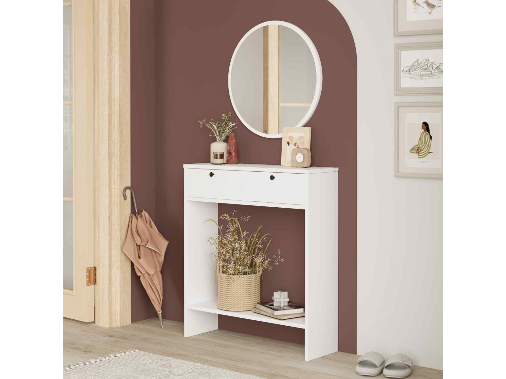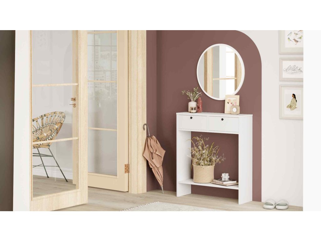 Toaletní stolek nabízí nejen místo pro upravení se, ale také elegantní doplněk pro váš interiér. S jeho moderním designem a praktickým zrcadlem přinesete do vašeho domova nový rozměr vkusu a funkcionality. Ať už jej umístíte kamkoli, dodá vašemu prostoru dotek elegance a stylu. Objevte krásu a komfort s tímto produktem.