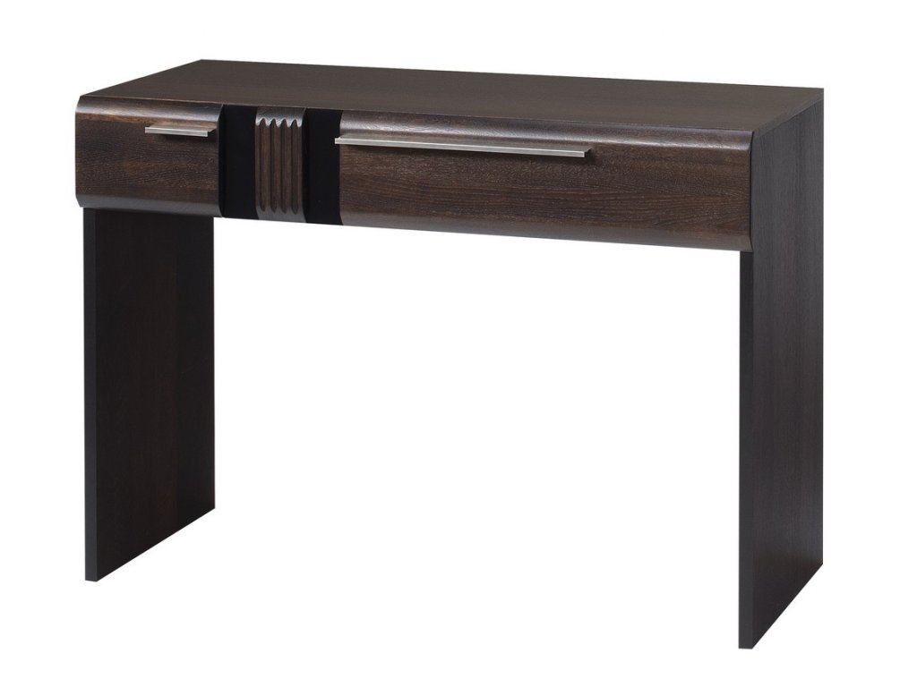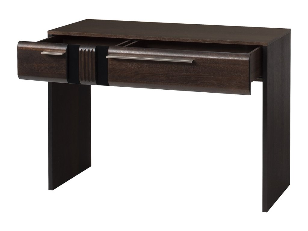 Toaletní stolek se zásuvkou ze sektorové řady PORTI značkového výrobce Szynaka. Systém PORTI je exkluzivní kolekce navržena v moderním duchu. Struktura ušlechtilého masivního dubu na přední straně a přírodní dýha na korpusu zdůrazňuje velmi klasickou barvu čokoládový dub. Opakující se prvek riflování v kombinaci s černým sklem je dekorační motiv, který se odráží v každém bloku. Celá řada se vyznačuje elegancí a jednoduchými tvary, které zaručují plné využití prostoru. Barevné provedení - čokoládový dub. Elegantní úchyty jsou z kovu. K toaletnímu stolku je možné dokoupit i taburet. Dodáváme ve smontovaném stavu.Doplňkové parametry