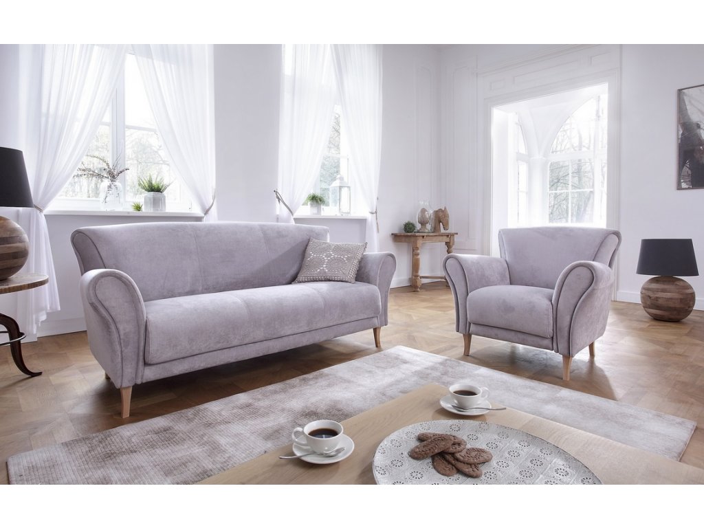 Elegantní trojsedák, který svým vzhledem a provedením zaručuje luxus a pohodlí. Tento trojsedák vyrábí značkový výrobce, který si potrpí na kvalitě a detailech. Trojsedák můžete doplnit křeslem. Barevné provedení - látka Orinoco 23, nožky jsou dřevěné buk natural.Doplňkové parametry