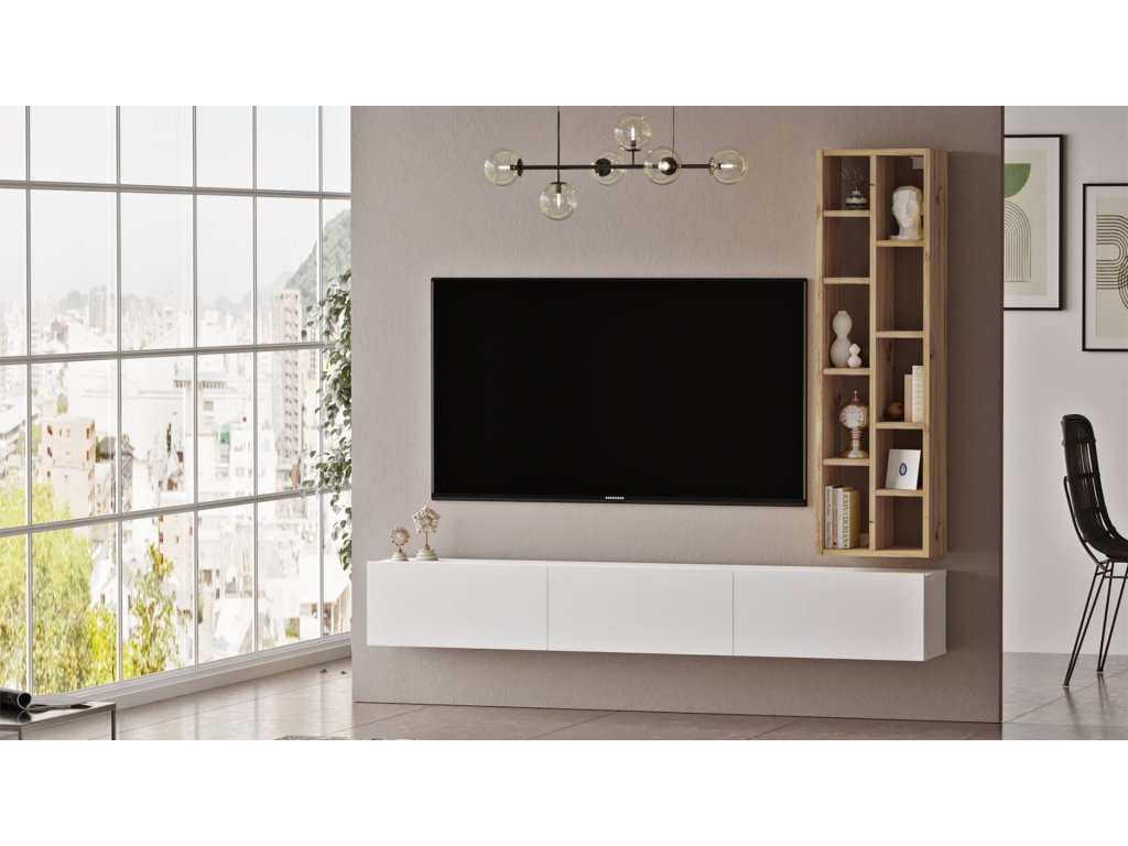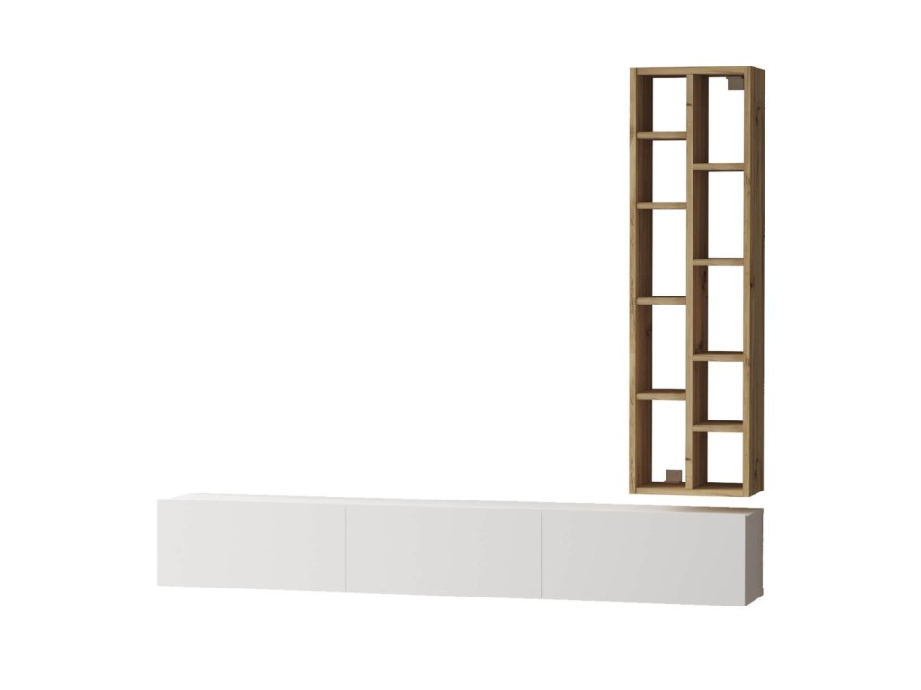 AMARIUS závěsná TV skříňka s regálem, barva dub Left + bílá