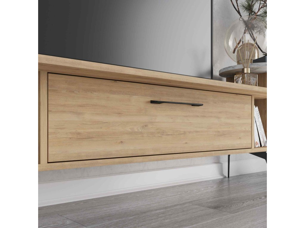 Představujeme vám TV stolek, ideální řešení pro každý obývací pokoj. Jeho sofistikovaná kombinace dubu a bílé Carrara dodává prostoru nadčasový vzhled, zatímco jeho funkčnost splní všechny vaše potřeby.