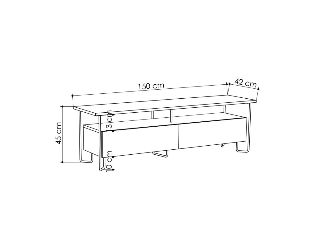 Rozměry: 45 x 150 x 42 cm – ideálně vyvážený rozměr, který poskytne dostatek prostoru pro všechny vaše zařízení a zároveň zaujme minimální místo v místnosti.