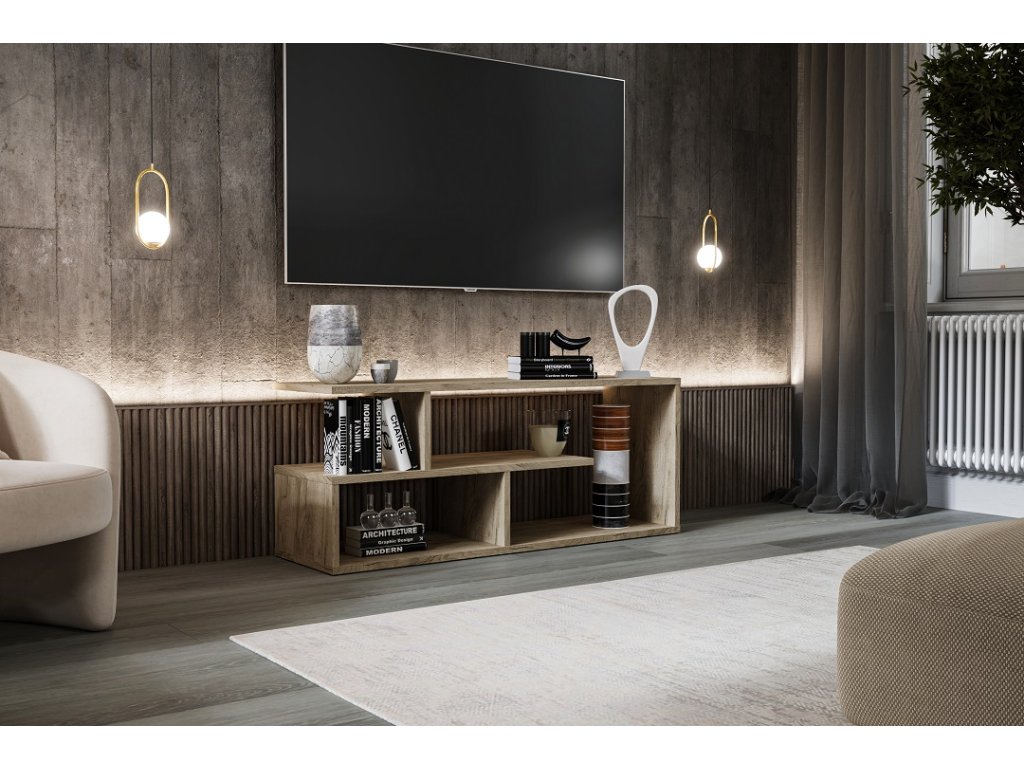 je televizní stolek v moderním a jednoduchém provedení. Barevné provedení: dub Craft. Disponuje jednou polickou pro odložení časopisů, ovladače na TV a podobně.