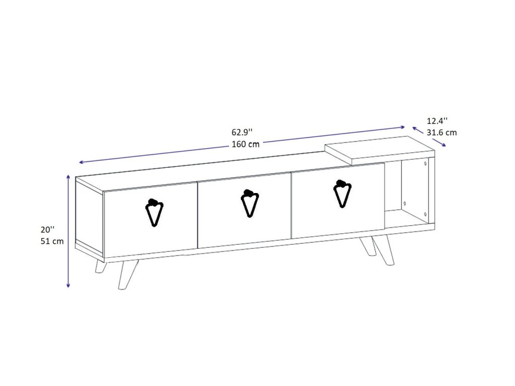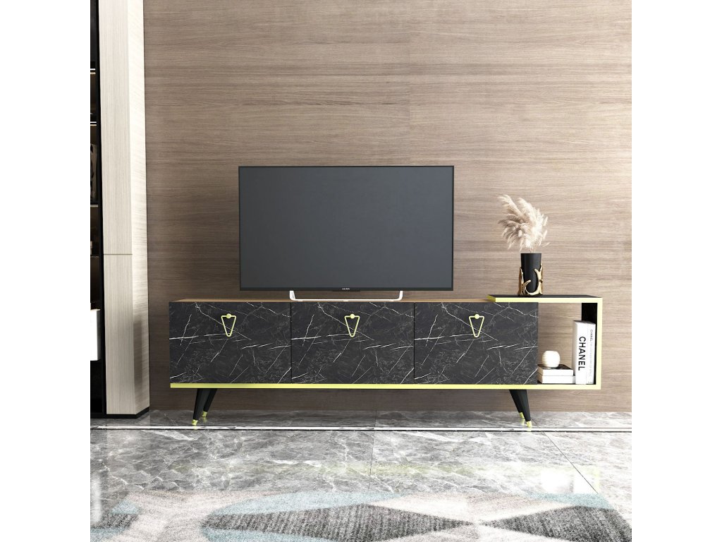 TV stolek přináší moderní a elegantní design, který zaujme na první pohled. Je ideálním doplňkem do obývacího pokoje a nabízí praktické úložné prostory díky kombinaci tří plných dvířek (skříněk) a regálku. Kvalitní materiály a luxusní vzhled zajistí dlouhou životnost a jedinečný styl vašeho interiéru.