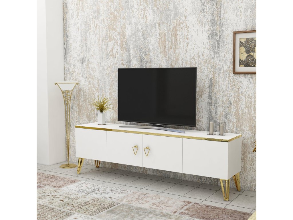 LARISA TV stolek na nožičkách, bílá / zlatá