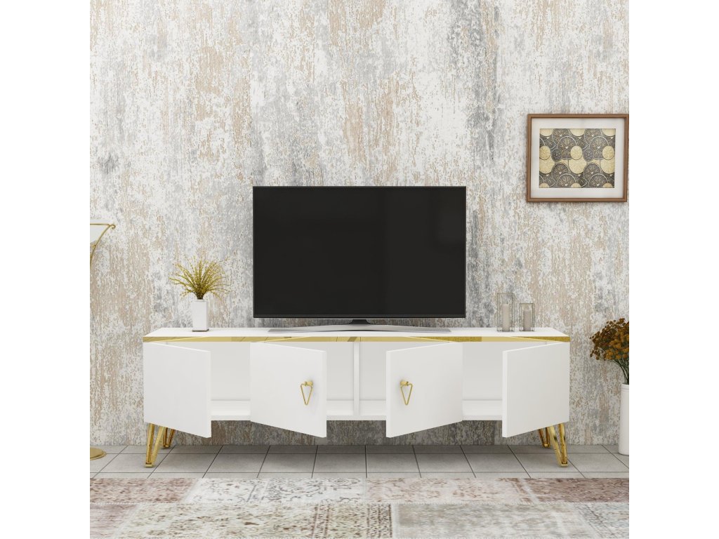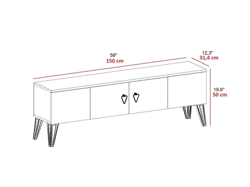 šířka: 144.6 cm | výška: 48.4 cm | hloubka: 35.6 cm TV Stolek SACHI: Retro elegance v antické bílé Introdukujte nádech vintage do svého obývacího pokoje s TV stolem SACHI....