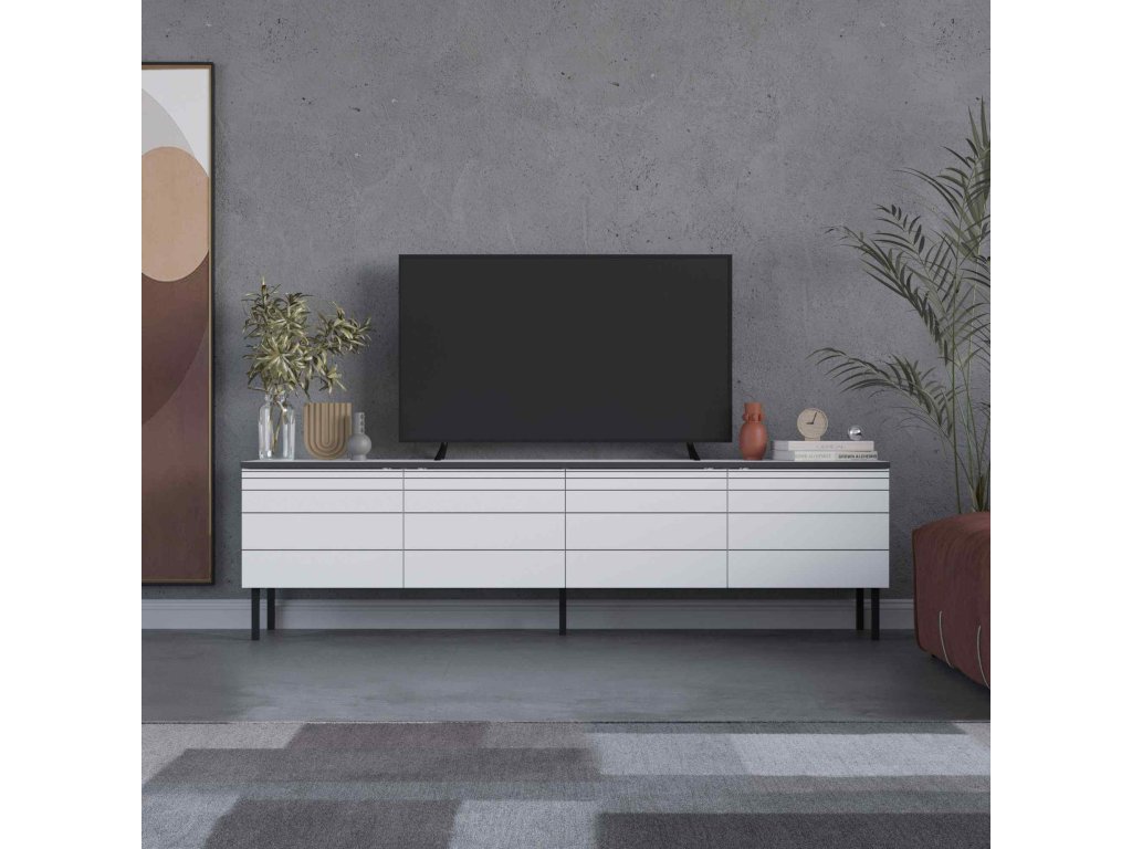 šířka: 180 cm | výška: 48 cm | hloubka: 35.6 cm TV Stolek: Spoje antické bílé a retro šedé v moderním designu Pro ty, kteří chtějí spojit klasický vzhled s moderními prvky, je...