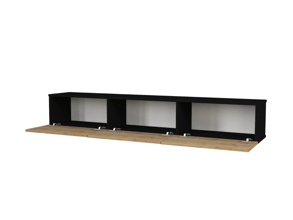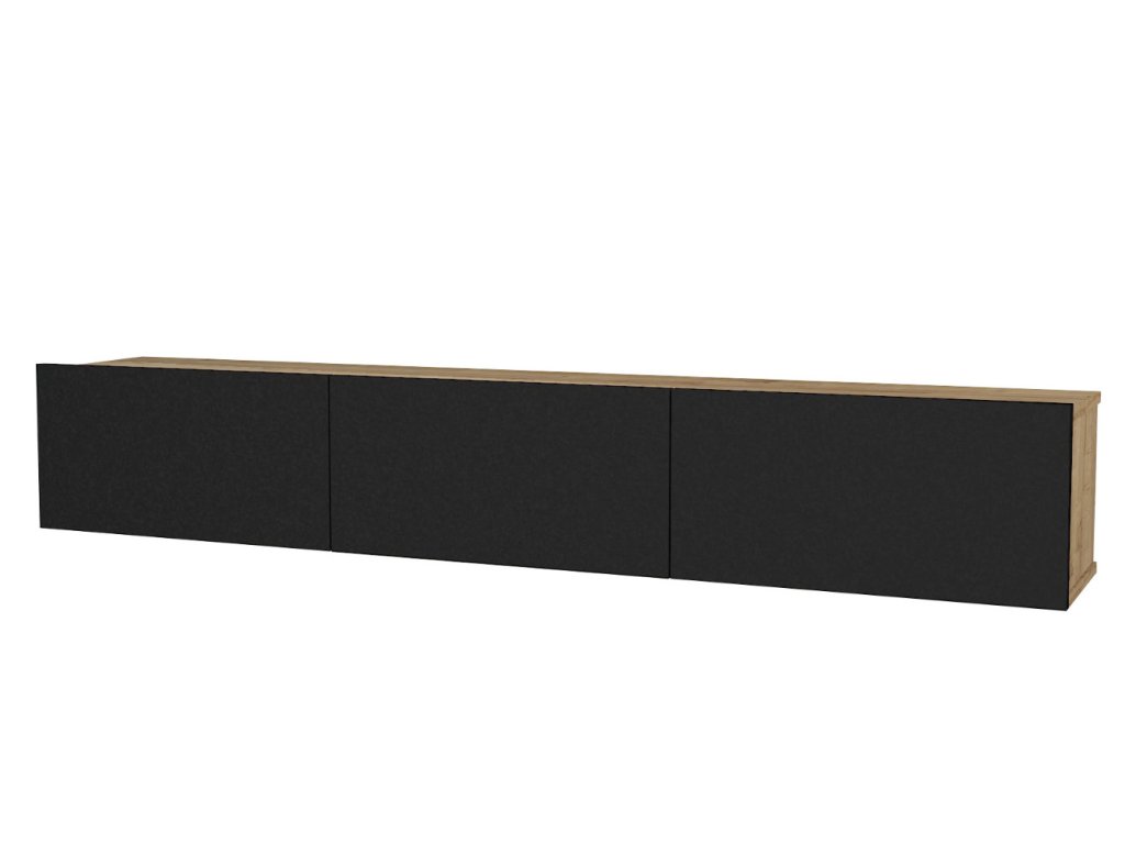 Závěsný televizní stolek se třemi výklopnými dvířky je vyroben z kvalitního lamina o tl.18 mm hraněné PVC páskou, odolného proti poškrábání v barvě sapphire/antracit. Dodáváme v demontovaném stavu.