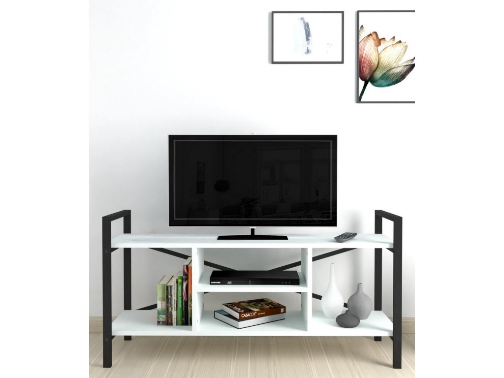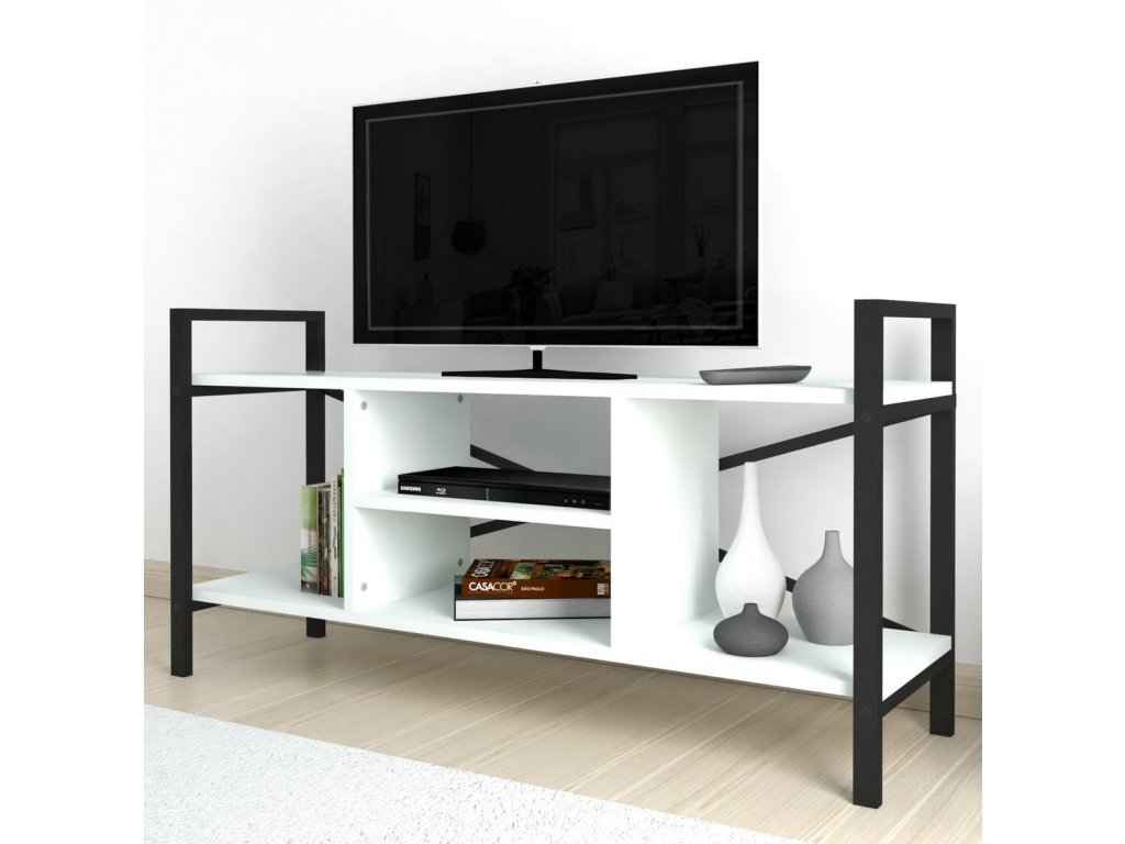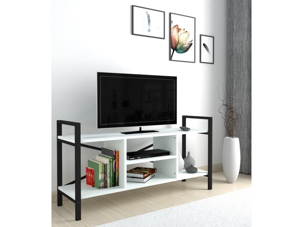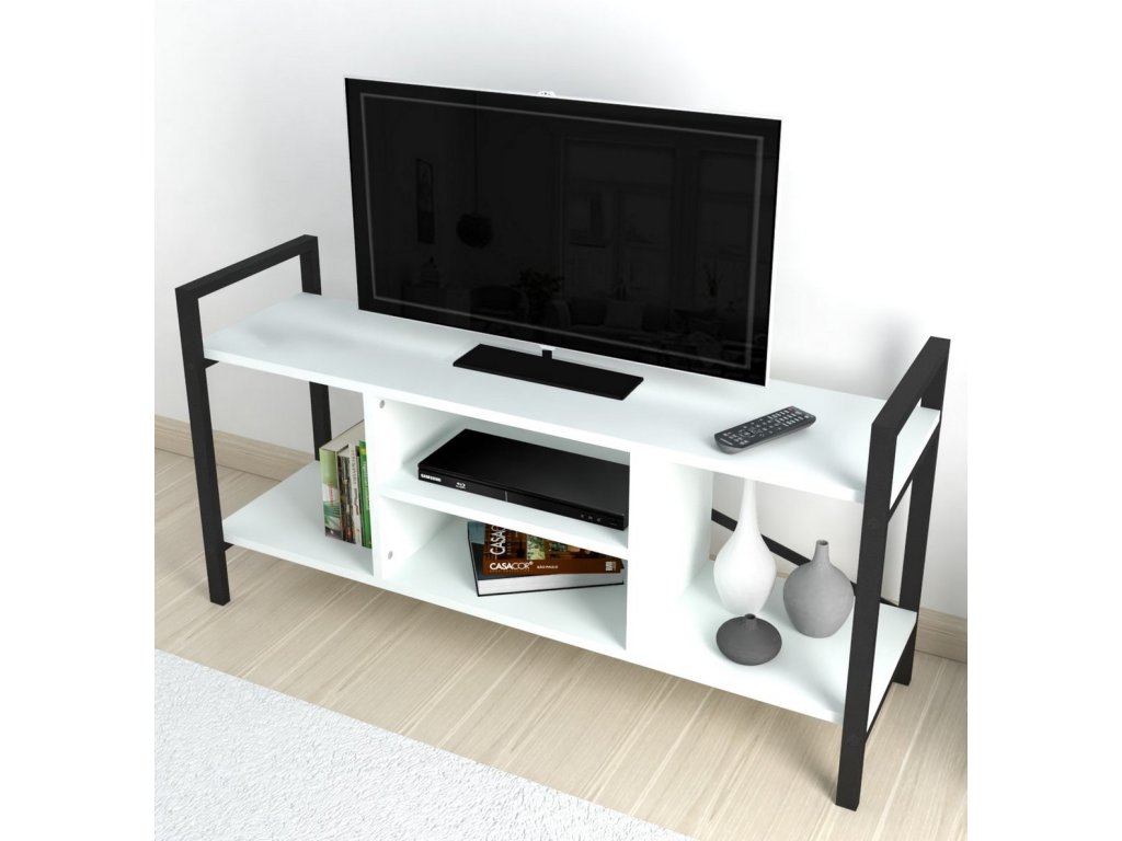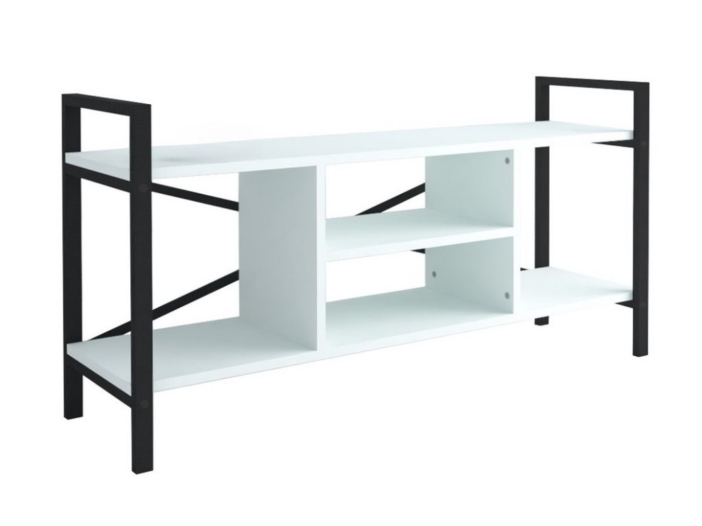 Televizní stolek je z kovového rámu v matné černé barvě a police jsou vyrobeny z kvalitní LTD desky. Barevné provedení polic je bílá. Dodáváme v demontovaném stavu.Doplňkové parametry