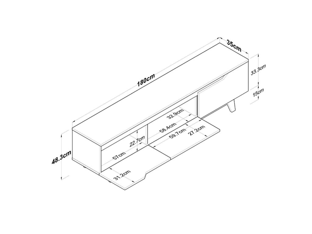 šířka: 140 cm | výška: 48,3 cm | hloubka: 39,9 cm Televizní stolek se zásuvkou je vyroben z desky LTD tl. 16 mm hraněné ABS páskou v barvě matná bílá. Zásuvka je vybavena...