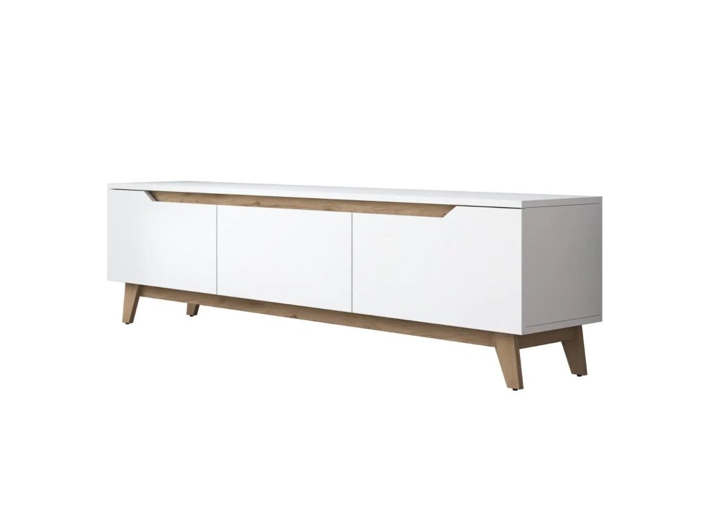 Televizní stolek na nožkách KELSO bílá/nožky ořech