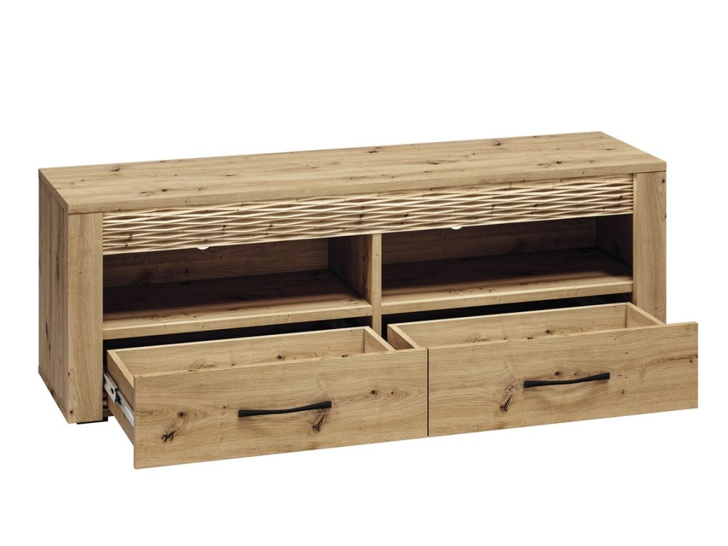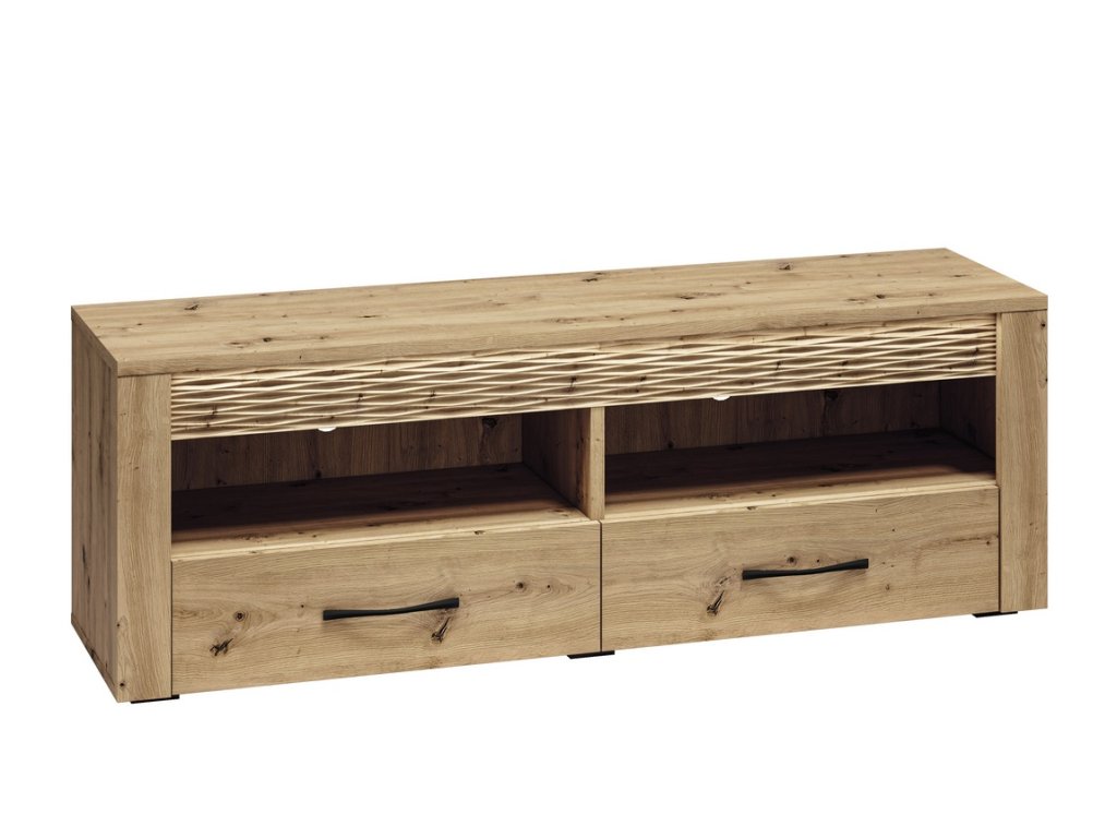 šířka: 155 cm | výška: 42 cm | hloubka: 42 cm Televizní stolek se dvěma výklopnými dvířky. Stolek je vyroben z kvalitní LTD v barvě dub artisan. Úchyty jsou z černého plastu....