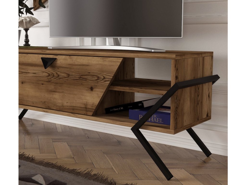 šířka: 150 cm | výška: 52 cm | hloubka: 40 cm Televizní stolek je vyroben z kvalitní desky LTD hraněné ABS páskou v barvě dub artisan. Dekorační riflovaná lišta nahoře z MDF...