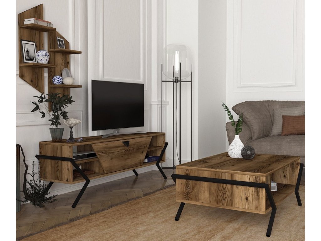 šířka: 83,4 cm | výška: 34,3 cm | hloubka: 38 cm Televizní stolek ze sektorového nábytku v moderním provedení vyroben z kvalitní LTD desky v barevné kombinaci dub sonoma / bílá...