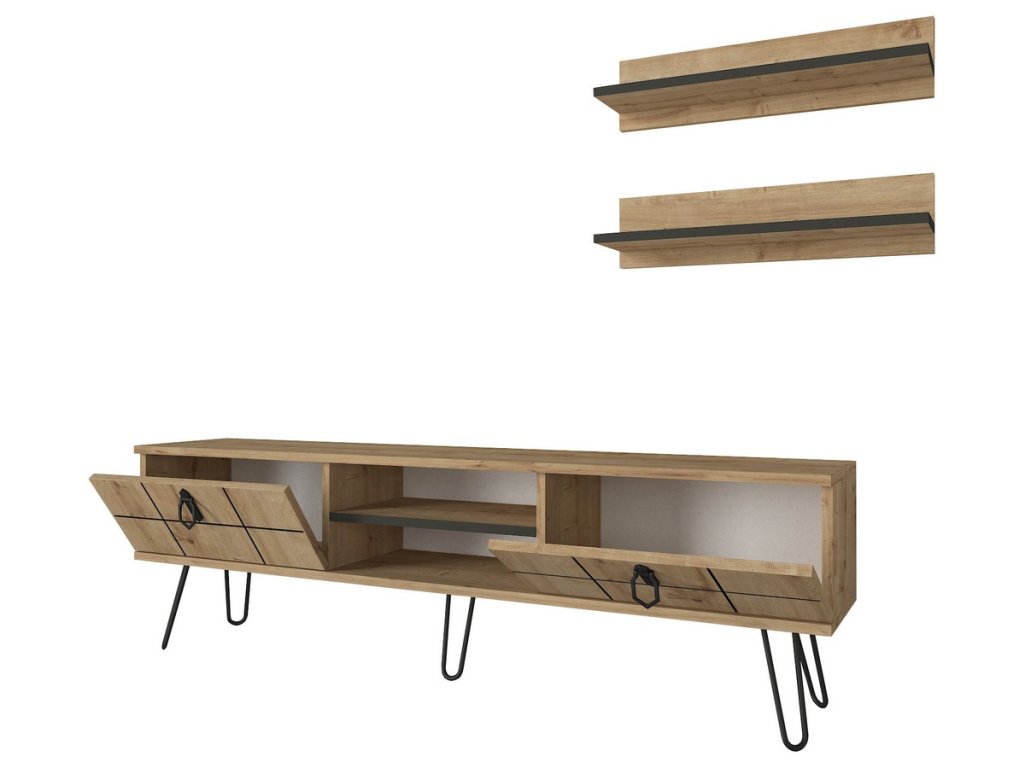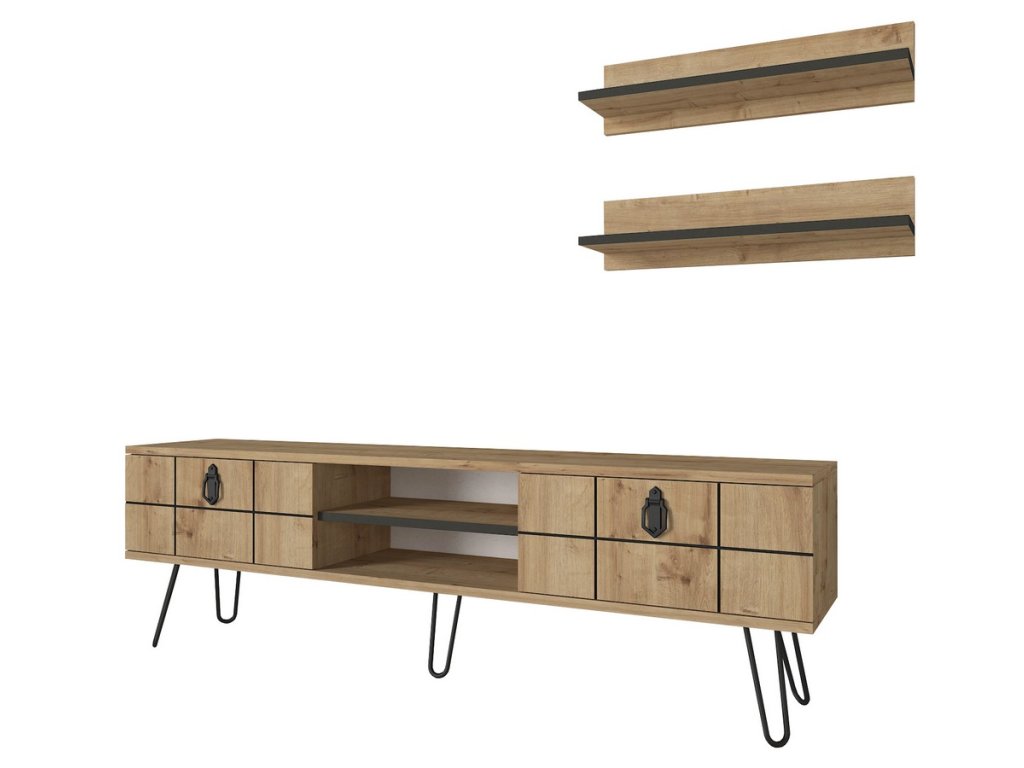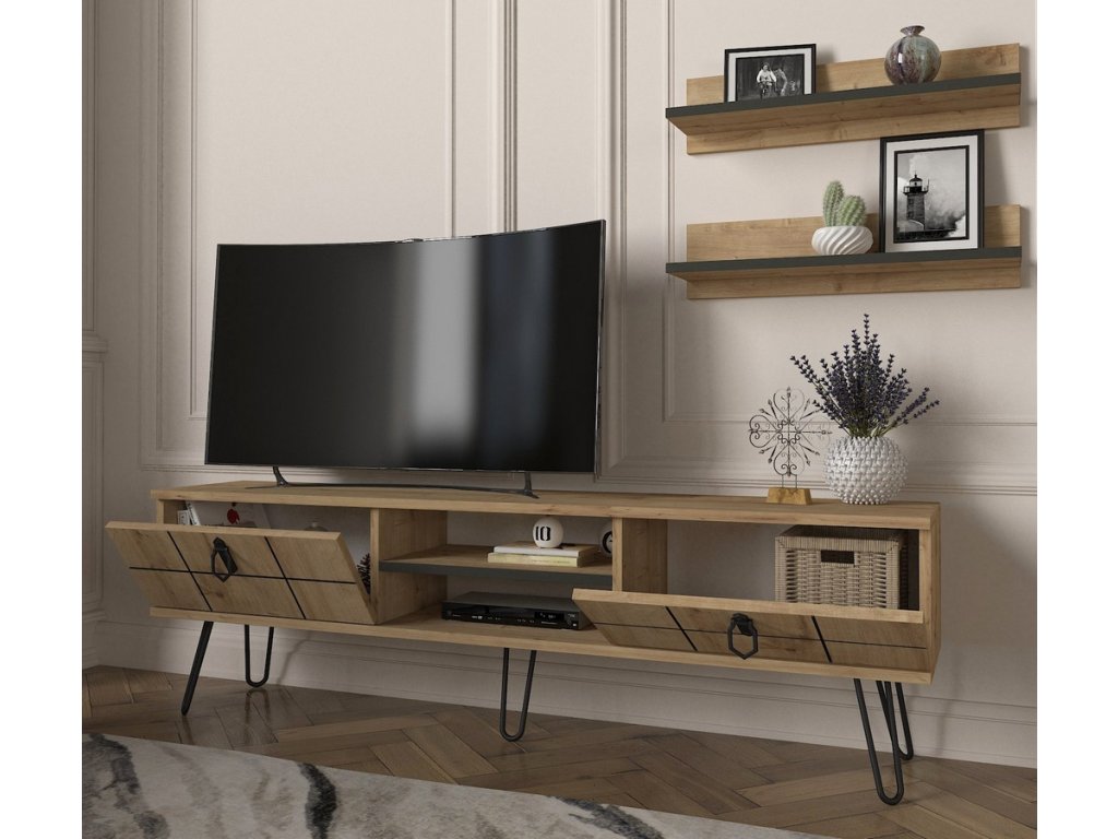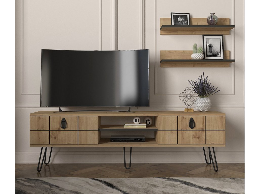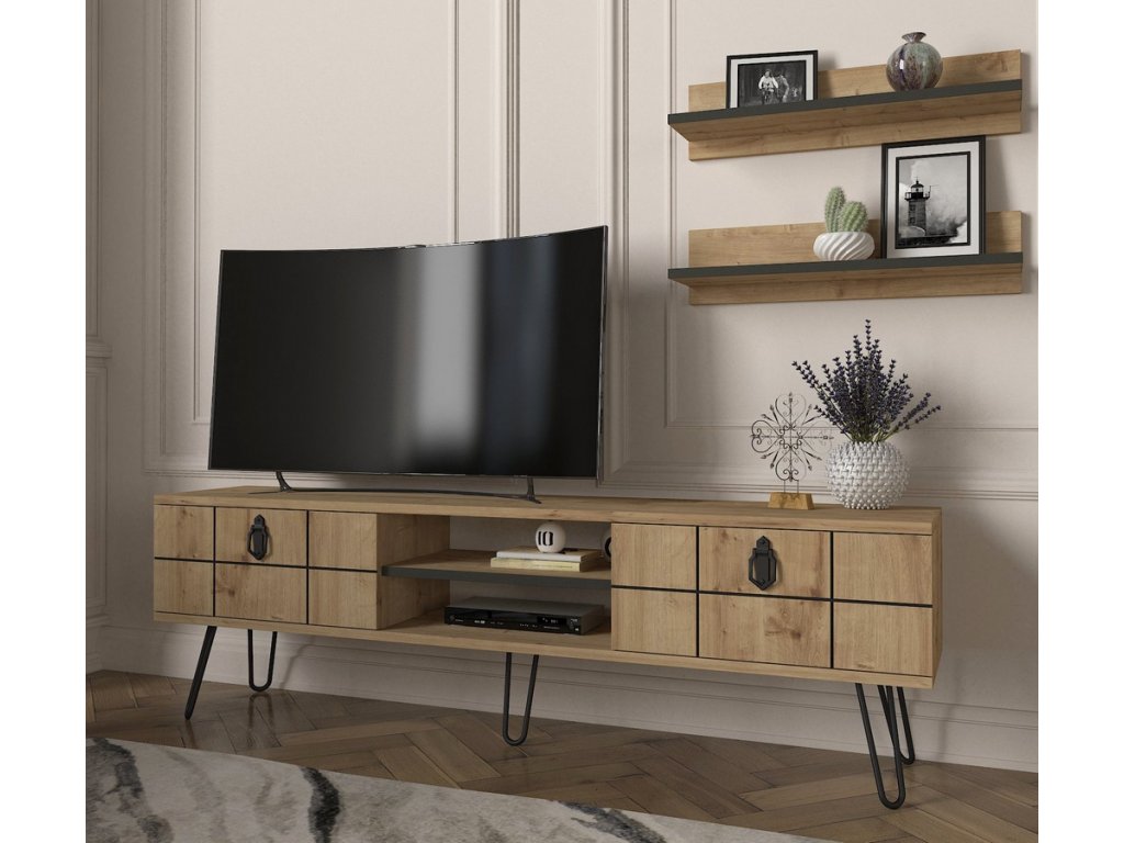 šířka: 180 cm | výška: 49 cm | hloubka: 35 cm TV stolek – Moderní a praktický doplněk do vašeho obývacího pokoje TV stolek přináší elegantní kombinaci dubu Artisan a antracitu,...