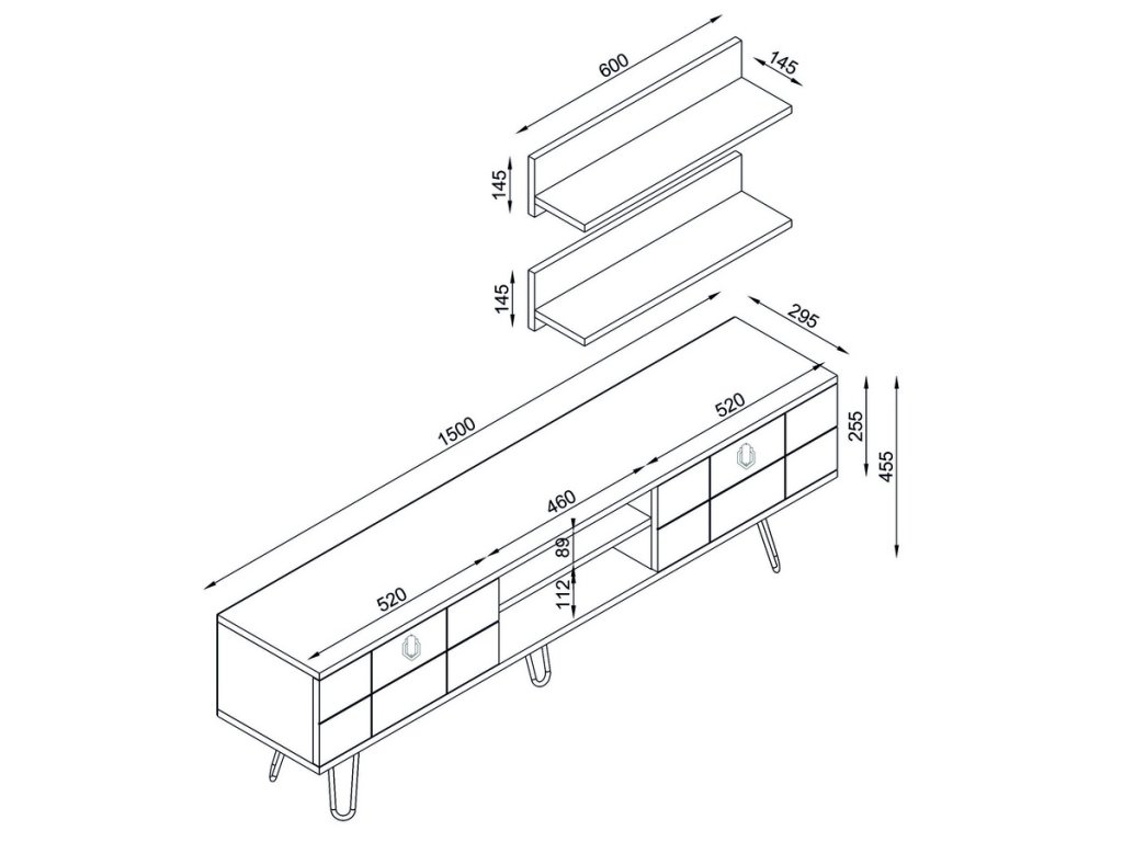 šířka: 150,5 cm | výška: 51 cm | hloubka: 40,5 cm Televizní stolek má 2 dvířka a 1 zásuvku. Jedná se o stylovou kolekci nábytku moderního stylu, který je vhodný do obývacího...