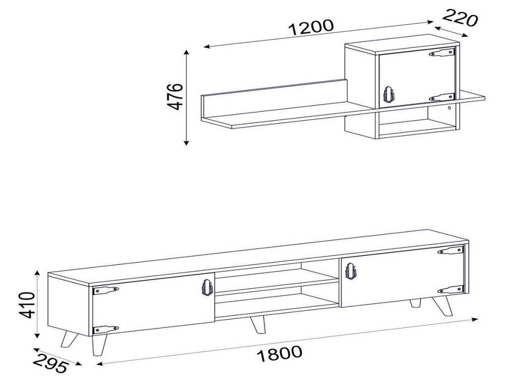 Televizní stolek s dvěma dvířky je vyroben z kvalitního lamina o tl.18 mm hraněné PVC páskou, odolného proti poškrábání v barvě vlašský ořech s kovovými prvky. Součástí balení je také závěsná skříňka s policí o rozměrech (Š x V x H cm) 120 x 47,6 x 22 cm. Dodáváme v demontovaném stavu.Doplňkové parametry