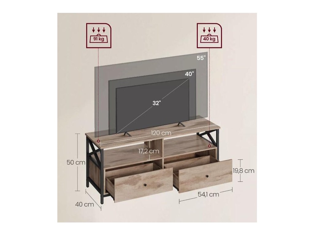 šířka: 185 cm | výška: 53 cm | hloubka: 45 cm Televizní stolek dvoudveřový se zásuvkou v industriálním stylu je vyroben z LTD desky, korpus je v barvě šedé, přední část dvířek...
