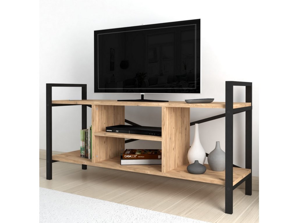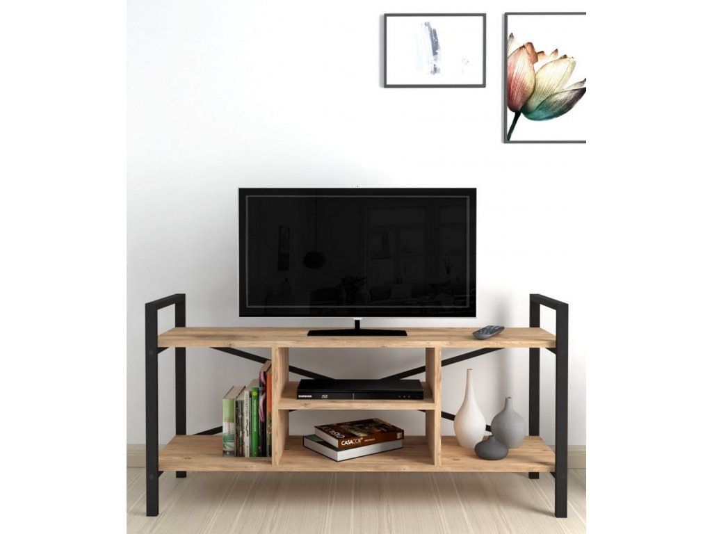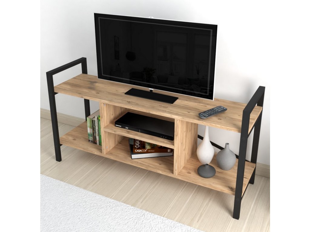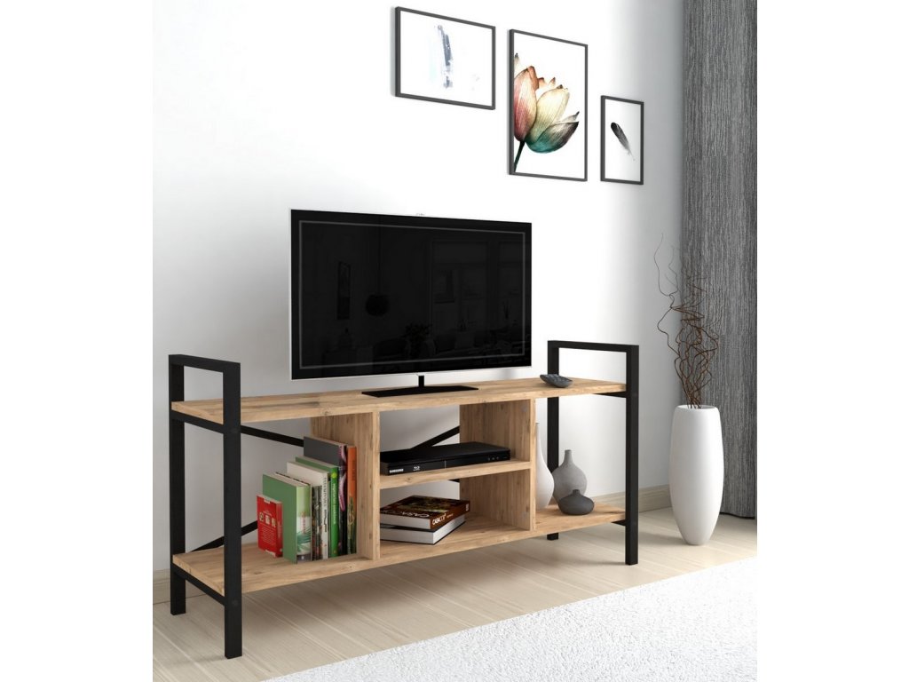 Televizní stolek je z kovového rámu v matné černé barvě a police jsou vyrobeny z kvalitní LTD desky. Barevné provedení polic je borovice. Dodáváme v demontovaném stavu.Doplňkové parametry