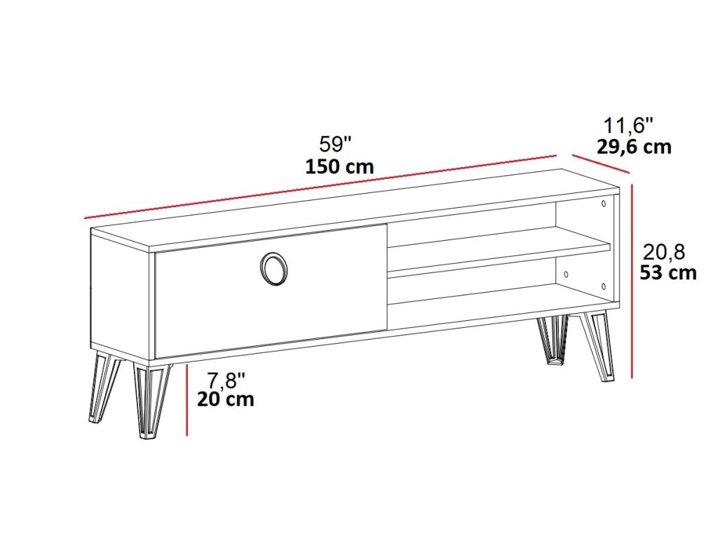 TV stolek je perfektní volbou pro ty, kteří hledají stylový a funkční nábytek do svého obývacího pokoje. Díky kombinaci plného dvířka a regálku nabízí praktický úložný prostor pro elektroniku, kabely nebo dekorace. Jeho moderní design a možnost připevnění na zeď z něj dělají všestranný doplněk do každého interiéru.