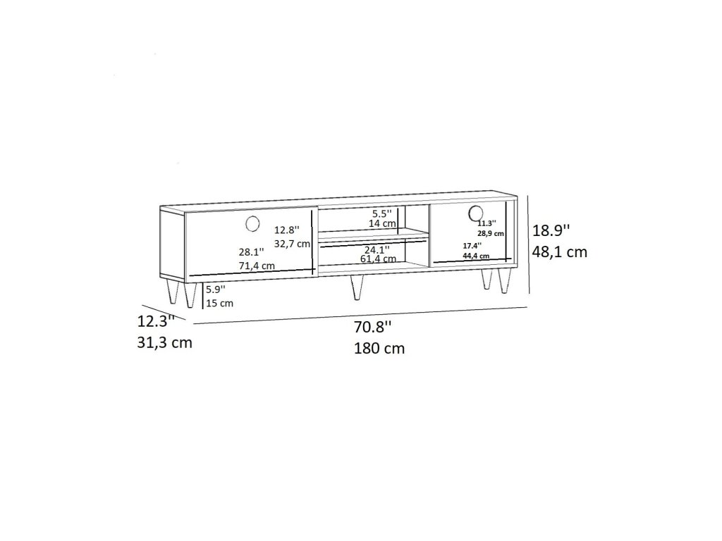 TV stolek INDIE je ideálním řešením pro moderní obývací pokoje, kde elegance a funkčnost jdou ruku v ruce. Díky širokému vzhledu, dvěma plným dvířkům a regálku poskytuje dostatek úložného prostoru pro elektroniku, příslušenství nebo dekorace. Jeho moderní design a kvalitní materiály dodávají interiéru styl a praktičnost.
