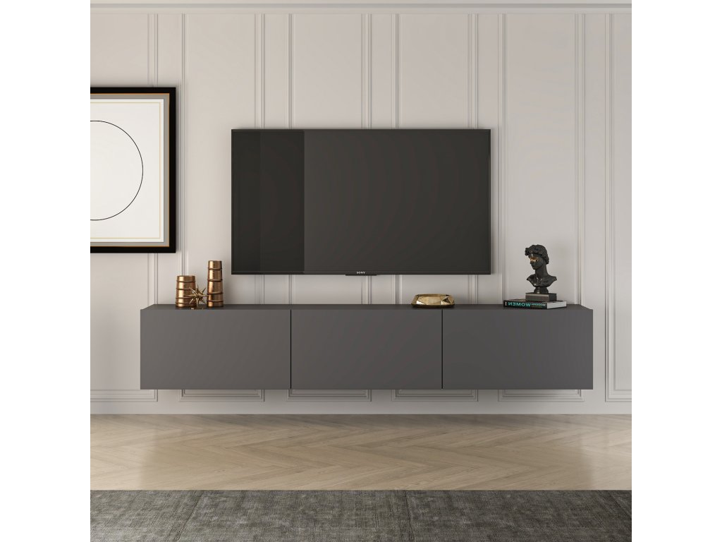 Antracitová barva tohoto televizního stolku dodá každé místnosti nádech sofistikovanosti, zatímco čisté linie a minimalistický design vytvářejí moderní vzhled, který jistě zaujme.