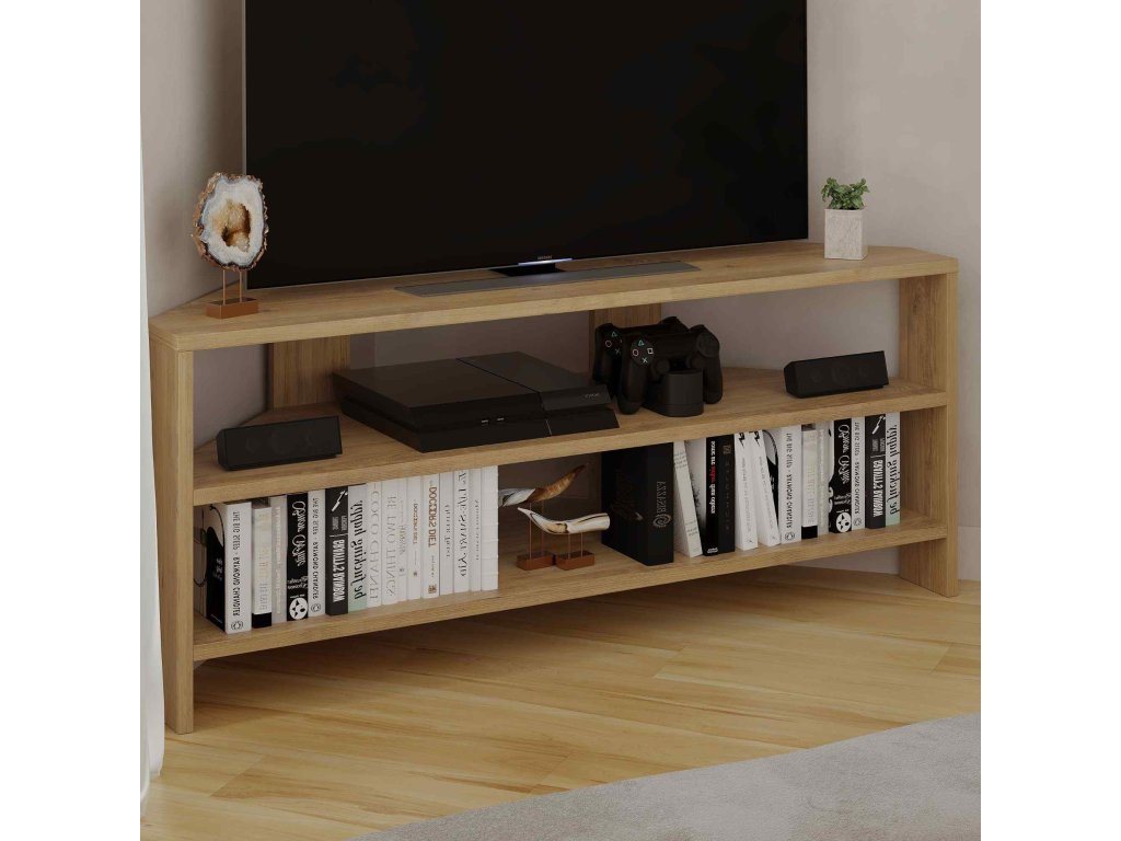 TV stolek není pouze pohledově atraktivní, ale také nabízí organizační řešení, díky kterému bude váš relaxační čas ještě příjemnější. Jeho elegantní design v barvě dubu obohatí každý interiér a dodá vašemu obývacímu pokoji příjemnou atmosféru.