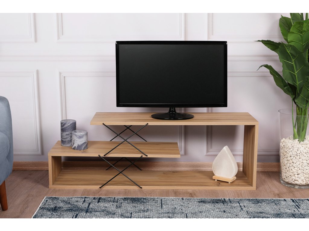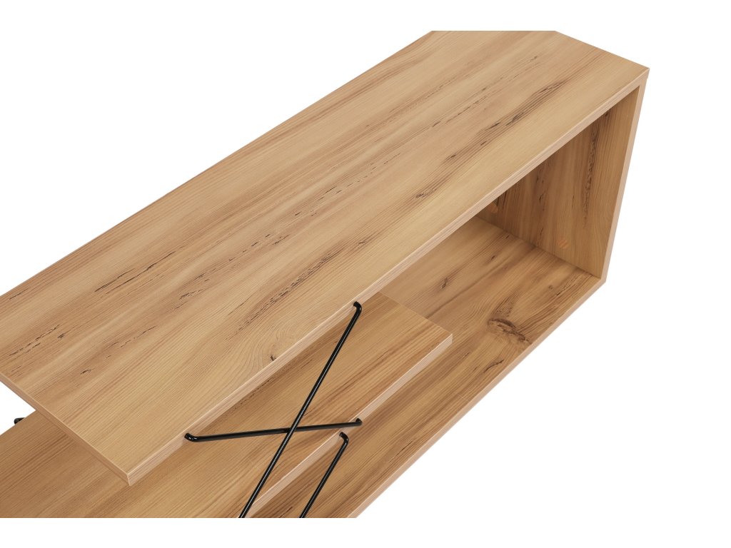 Tento televizní stolek s elegantním a moderním industriálním konceptem se bez námahy začlení do jakéhokoli interiéru. Dubová barva dodává vašemu obytnému prostoru nádech tepla a elegance, díky čemuž se stane perfektním doplňkem.
