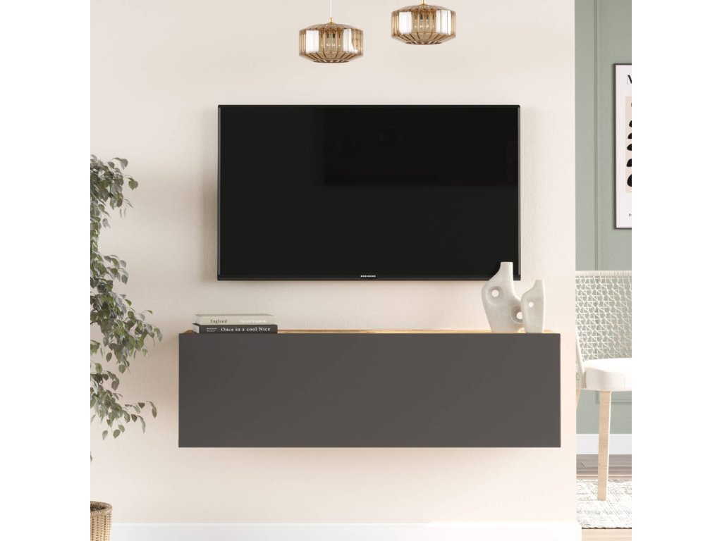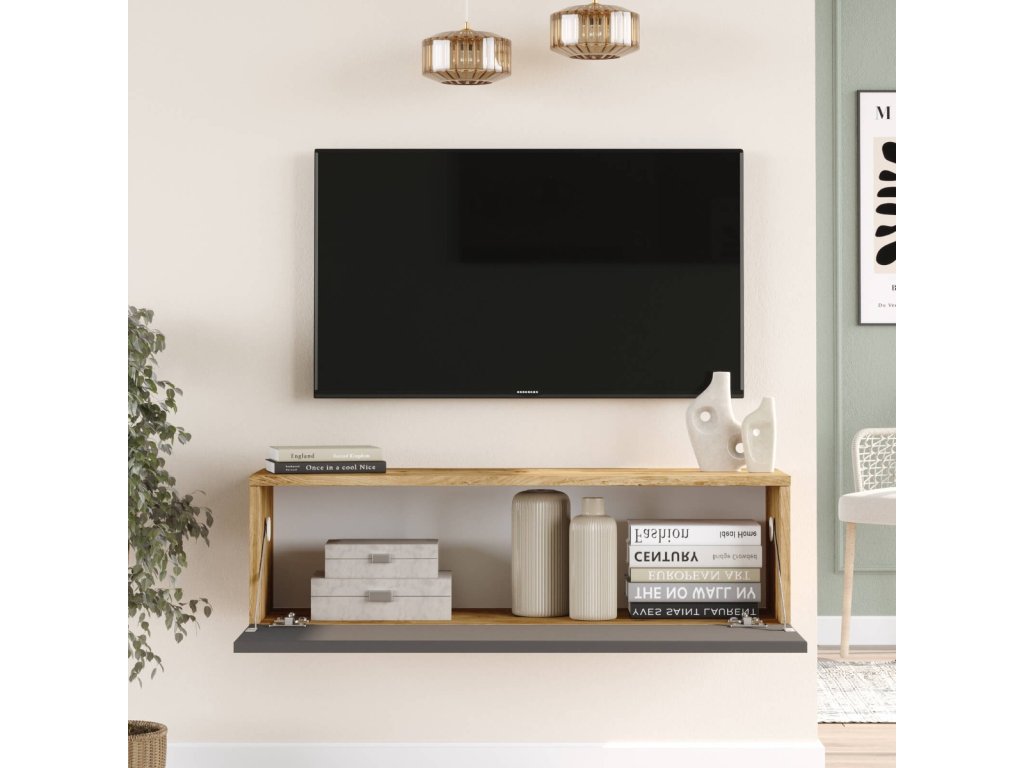 INDRE závěsný TV stolek, barva borovice + antracit
