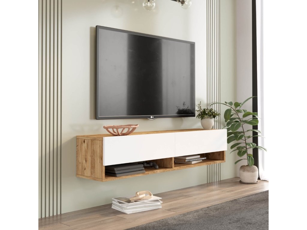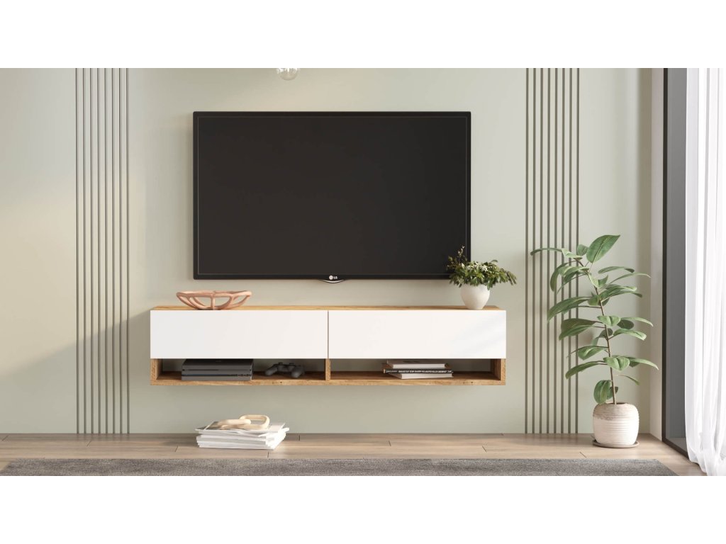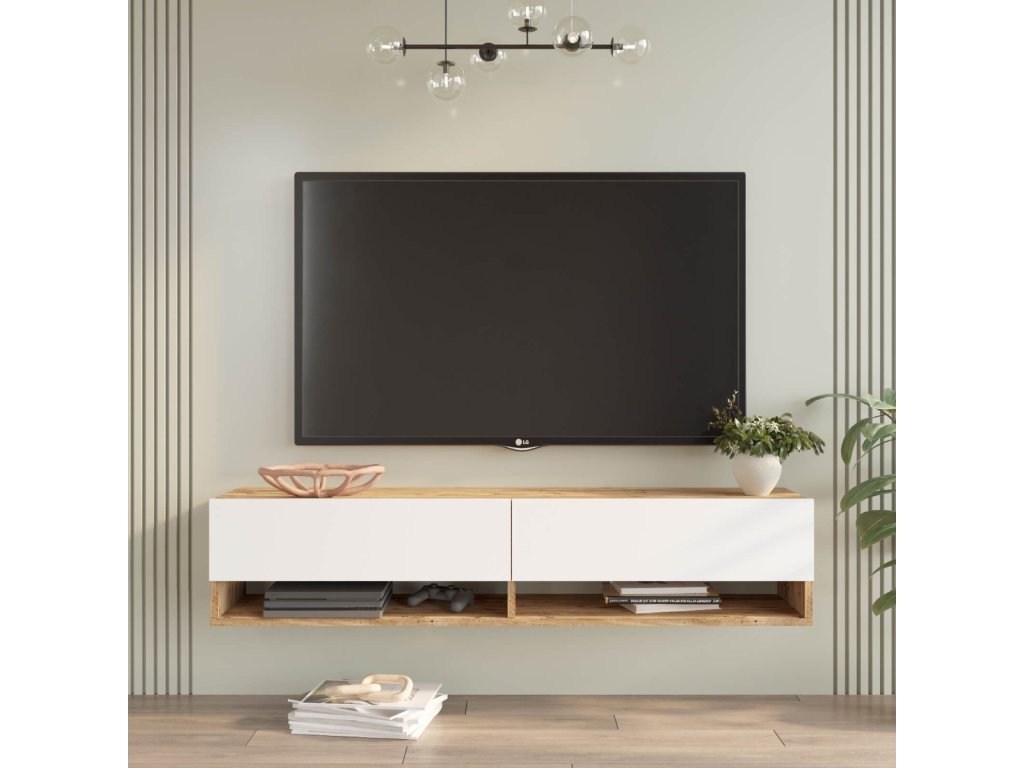 Moderní televizní stolek v kombinaci bílé a borovice