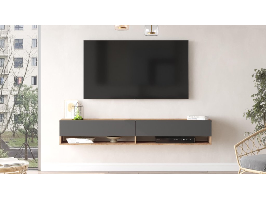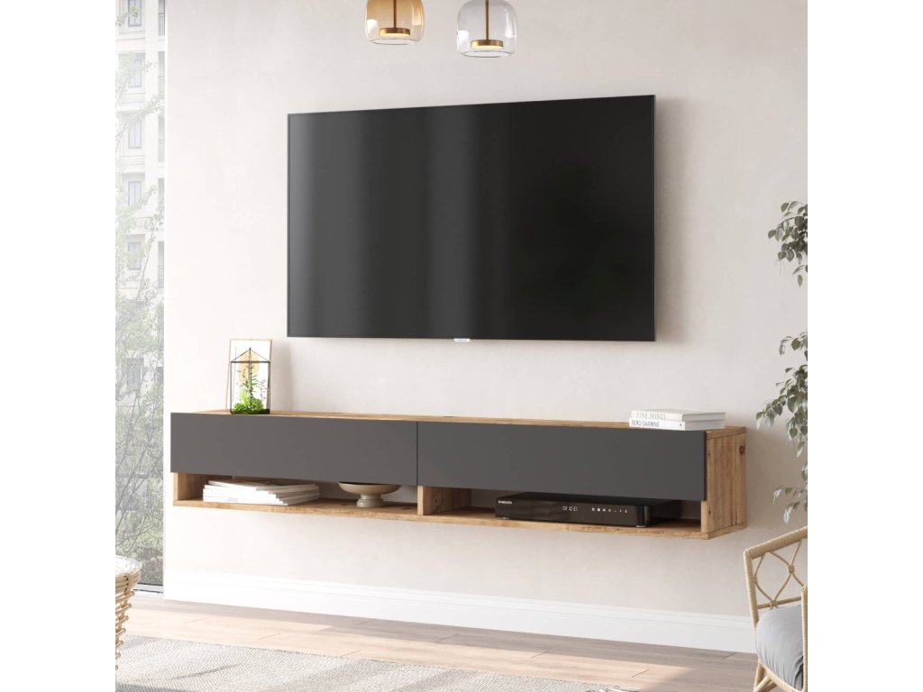 Televizní stolek představuje harmonii mezi moderním designem a výjimečnou funkčností. Tento výrobek v sobě kombinuje působivé barvy borovice a antracitu, což z něj dělá dokonalý kousek nábytku pro váš obývací pokoj, kancelář či pracovnu.