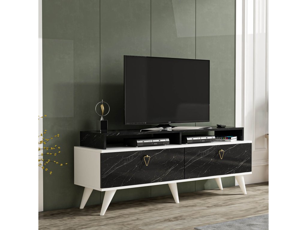 VALDEZ TV stolek na nožičkách, černá / bílá