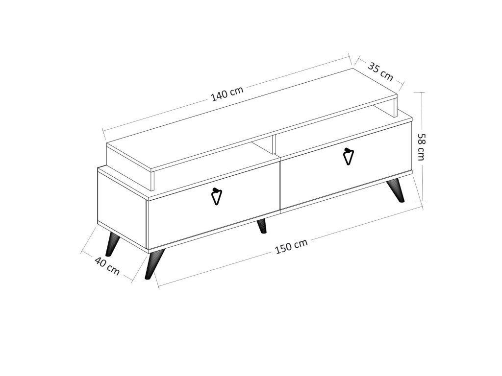 TV stolek je ideálním řešením pro váš obývací pokoj, pokud hledáte kombinaci moderního designu a funkčnosti. Díky svým rozměrům 58 x 150 x 40 cm nabízí dostatek prostoru pro vaši televizní techniku i další doplňky.