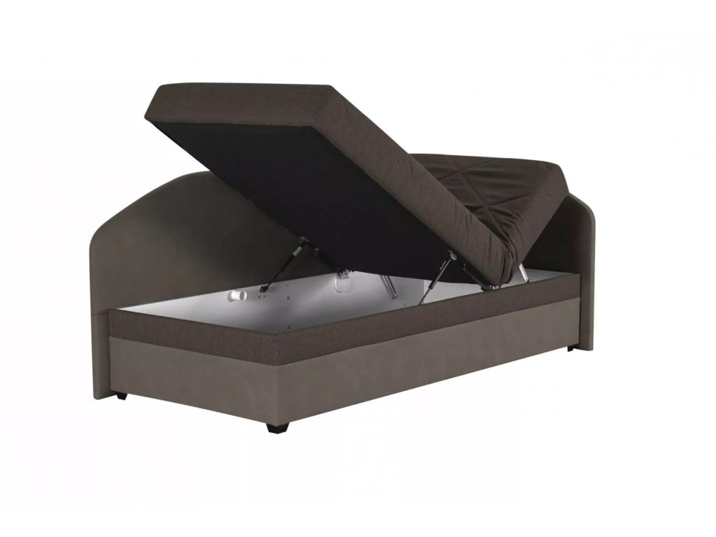 Torino je polohovací válenda s elastickou PUR matrací, která je uložena na lamelovém roštu. Plocha pro spaní je 90x200 cm s komfortní výškou lehací plochy 52 cm. Speciálně strukturovaný povrch jádra matrace zajišťuje dobré přizpůsobení se tělu a optimální proudění vzduchu. To je důležité pro dosažení správného spánkového klimatu. Rošt je vybavený polohováním pro hlavu (5 poloh) i nohy (1 poloha). Samozřejmostí je i velký úložný prostor na lůžkoviny, který je přístupný od nohou. Válenda nemá zadní část čalouněnou potahovou látkou, je určena k umístění do rohu ke stěně. Pohovka je potažena v kombinaci dvou potahových látek, jejichž barva a struktura je vyobrazena na doplňkových fotografiích.