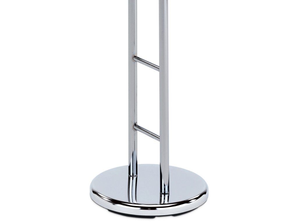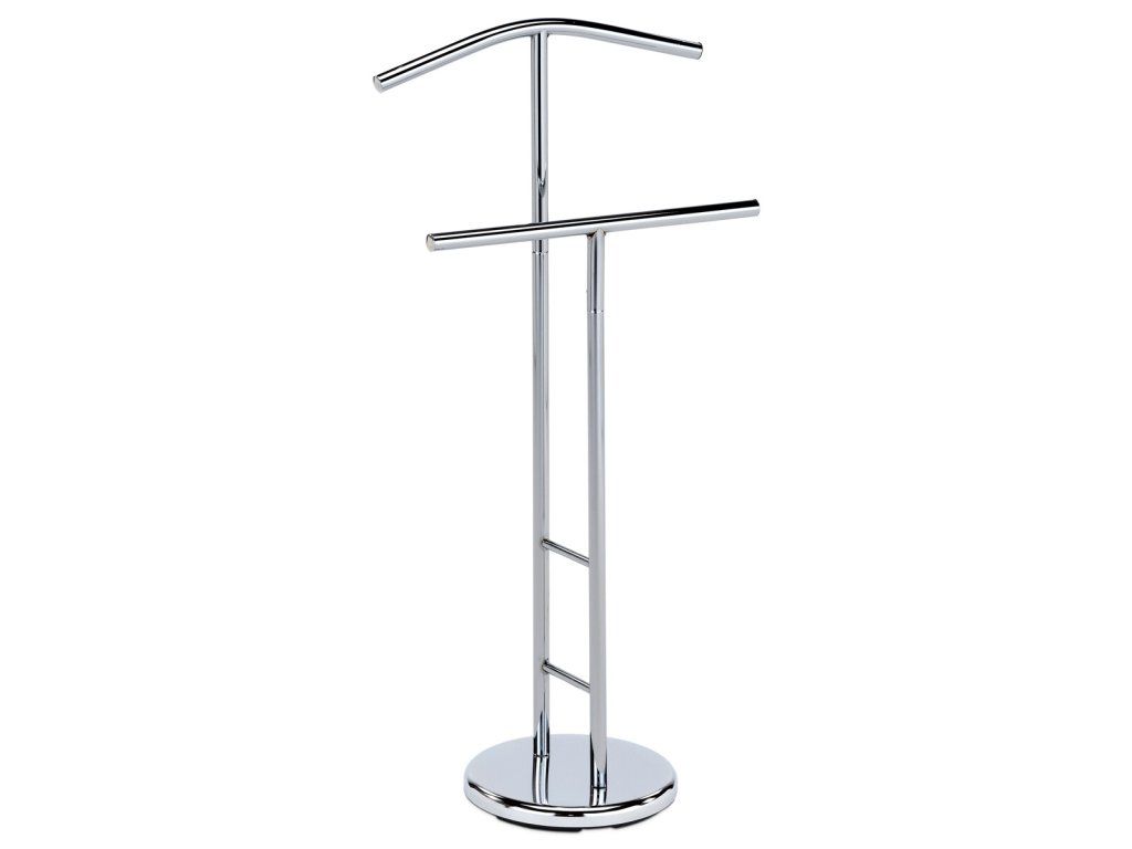 Němý sluha v lesklém chromovém provedení nabízí praktické řešení pro uložení oděvů a doplňků v ložnici či předsíni. Jeho kovové tělo je pevné a stabilní, s výškou 104 cm poskytuje dostatek prostoru pro zavěšení košil, kalhot i dalších kousků oblečení. Kulatá základna zajišťuje bezpečnou oporu a nosnost až 5 kg umožňuje pohodlné uložení více věcí najednou. Minimalistický design s čistými liniemi se snadno kombinuje s různými styly interiérů a zároveň šetří místo díky kompaktním rozměrům.