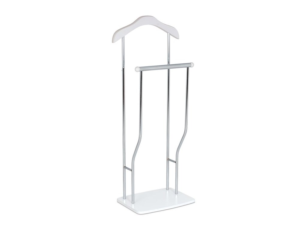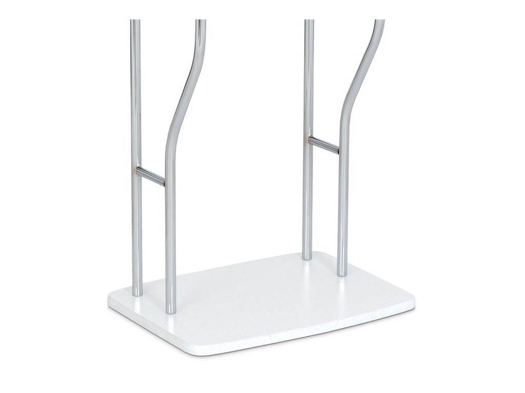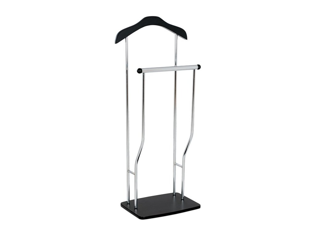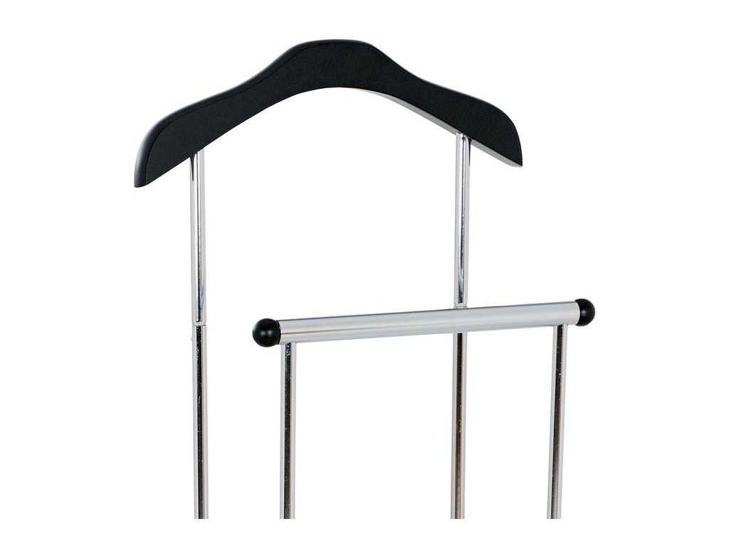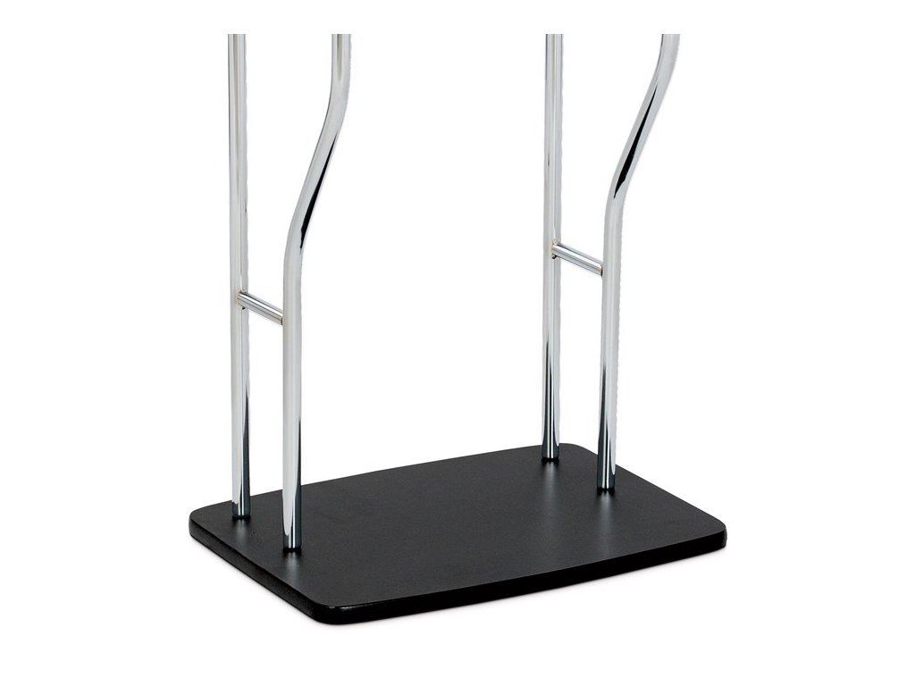 Němý sluha v černém matném provedení kombinuje pevnou MDF základnu s chromovanými kovovými prvky, které zajišťují stabilitu a dlouhou životnost. Výška 108 cm umožňuje pohodlné zavěšení oděvů na ramínko, zatímco spodní tyč slouží k zavěšení kalhot nebo šál. Design s čistými liniemi a kontrastem černé a chromu se hodí do moderních i klasických interiérů. Nosnost až 5 kg odpovídá běžnému domácímu použití. Praktický doplněk do ložnice či předsíně usnadňuje organizaci oblečení.