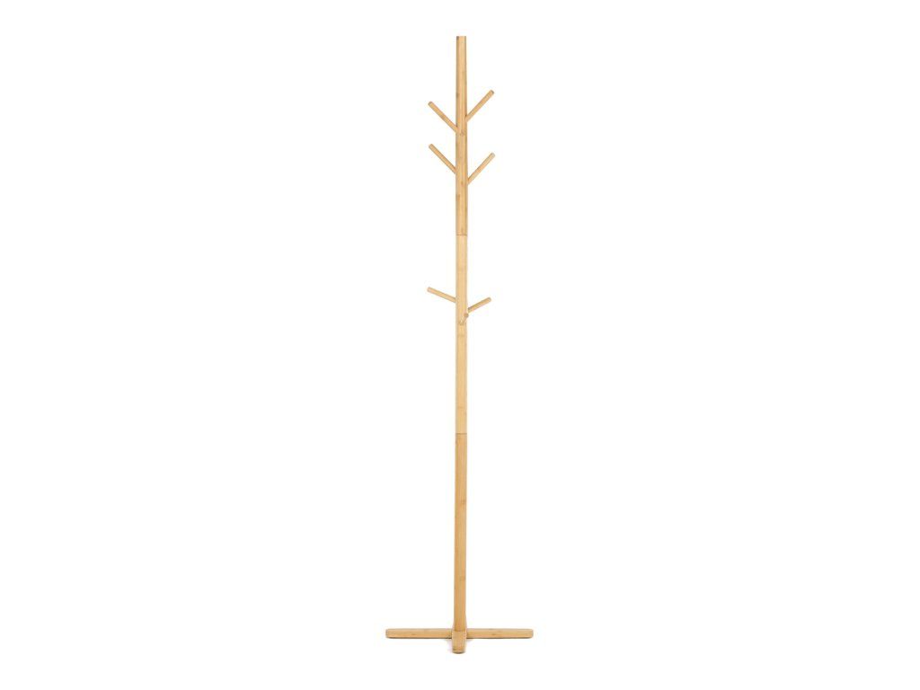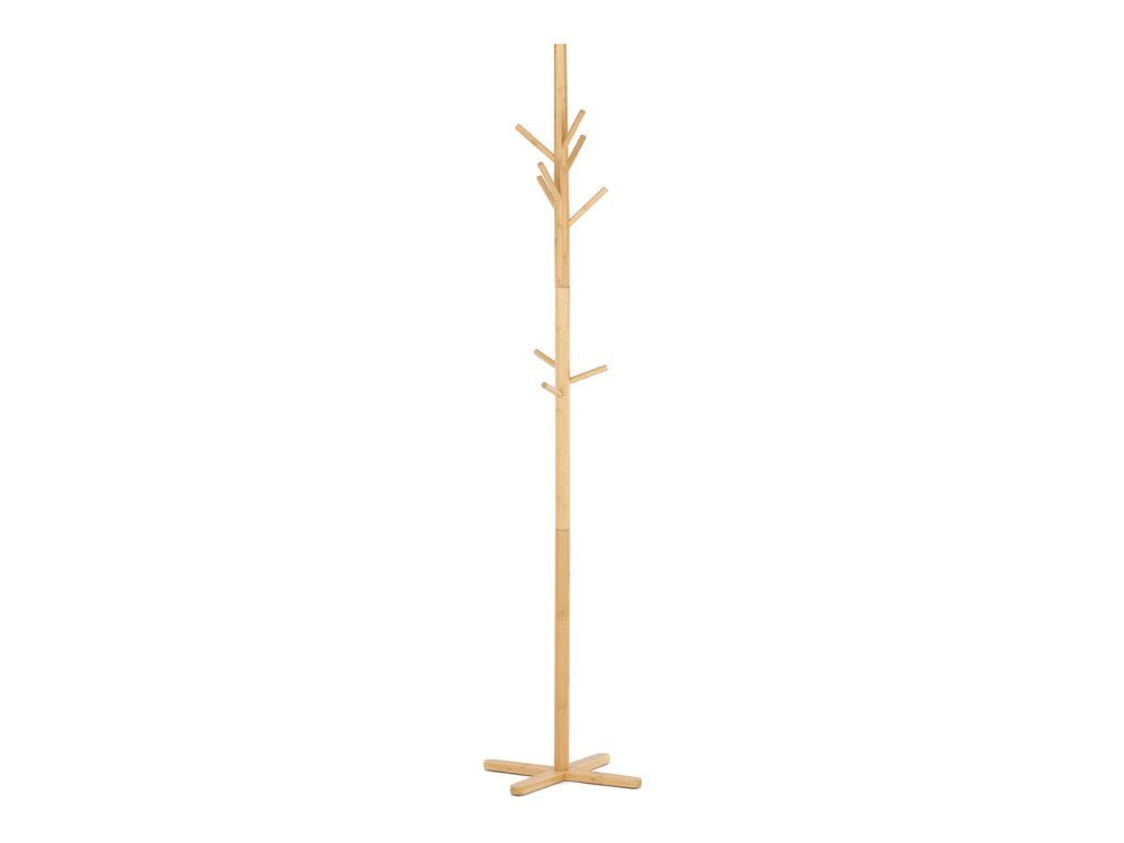 Stojanový věšák z masivního bambusu v přírodním odstínu nabízí praktické a estetické řešení pro ukládání oděvů a doplňků. Jeho pevné provedení zajišťuje stabilitu a dlouhou životnost, přičemž bambusový materiál se snadno udržuje a působí příjemně teplým dojmem. Věšák je vybaven osmi větvemi různých délek, které umožňují efektivní rozložení zavěšených předmětů bez vzájemného překrývání. Křížová základna podporuje stabilitu i při větším zatížení. Výška 180 cm poskytuje dostatek prostoru pro kabáty, šály nebo klobouky v domácnostech i kancelářích.