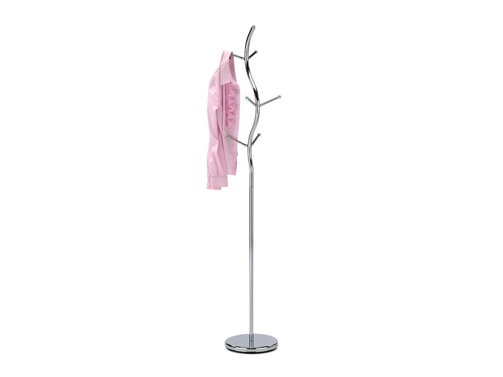 Stojanový věšák s výškou 180 cm je vyroben z pevného chromovaného kovu, který zajišťuje stabilitu a dlouhou životnost. Design věšáku tvoří elegantní zakřivené tyče s osmi kovovými háčky zakončenými kulatými koncovkami, které chrání oděvy před poškozením. Pevná kruhová základna přispívá k vyváženosti a bezpečnému postavení i při plném zatížení do 10 kg. Věšák je vhodný pro domácnosti i kanceláře, kde nabízí praktické a stylové řešení pro zavěšení kabátů, bund či doplňků.