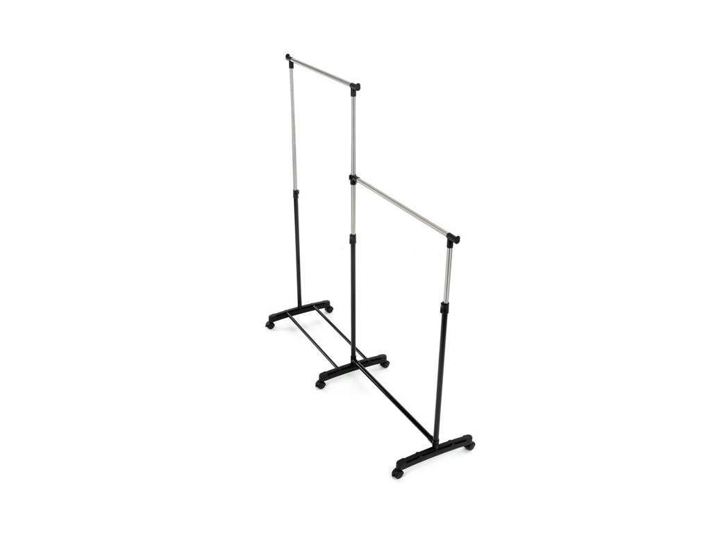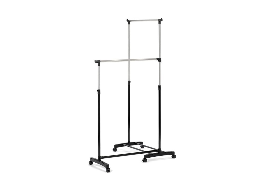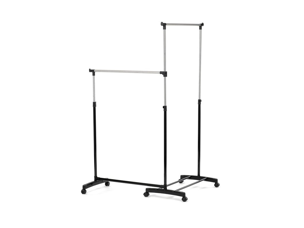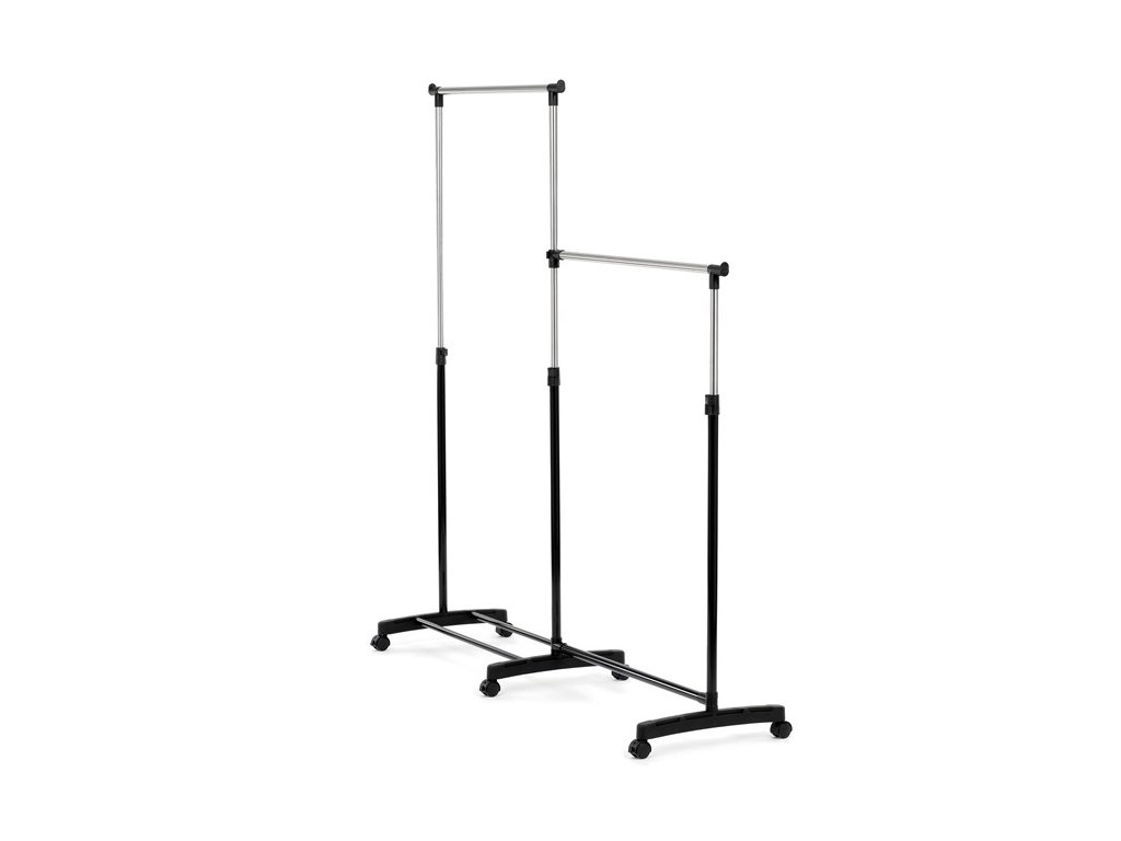 Dvojitý stojan na šaty značky Autronic je ideálním řešením pro maximální využití úložného prostoru. Stabilní kovová konstrukce v kombinaci s kolečky umožňuje snadnou manipulaci a vysokou nosnost. Dvě prostorné tyče poskytují dostatek místa pro zavěšení oblečení, ideální pro šatny, ložnice či předsíně. Minimalistický design v černém provedení se snadno přizpůsobí jakémukoliv interiéru. Díky své praktičnosti a flexibilitě je tento stojan perfektní volbou pro každodenní použití i sezónní organizaci šatníku.