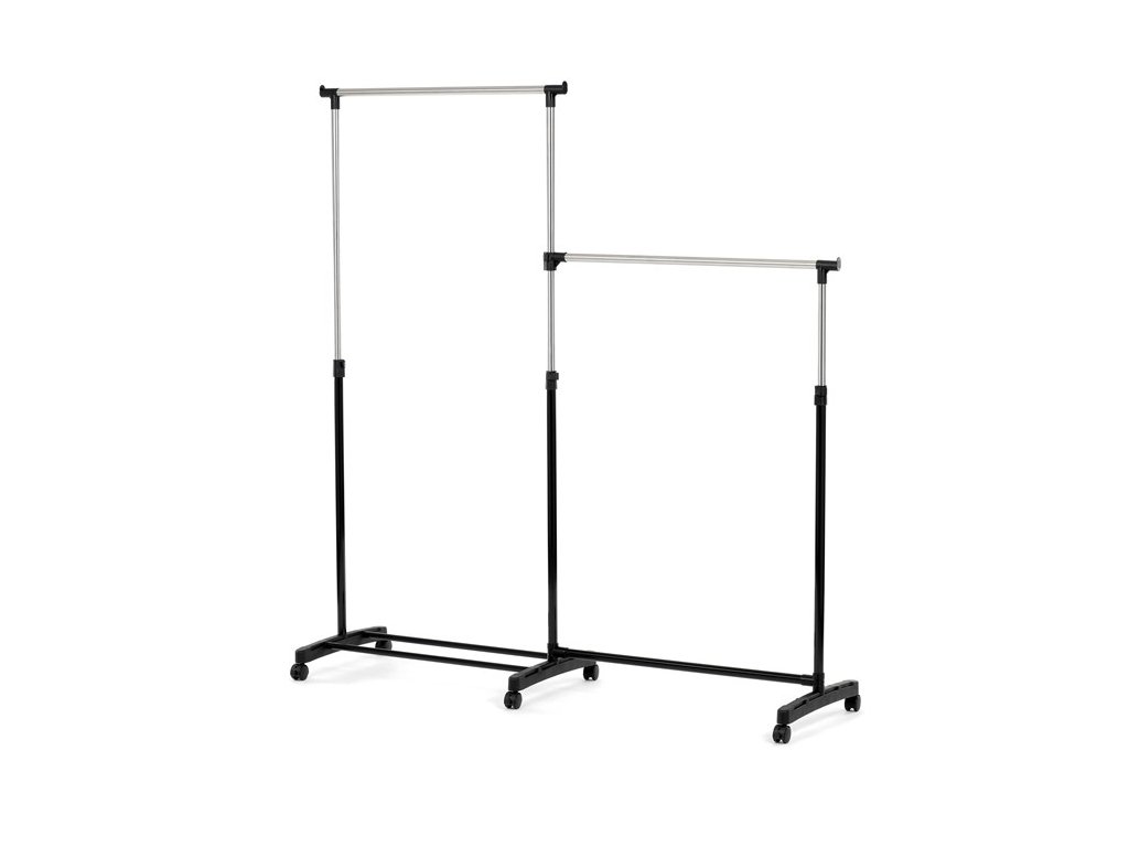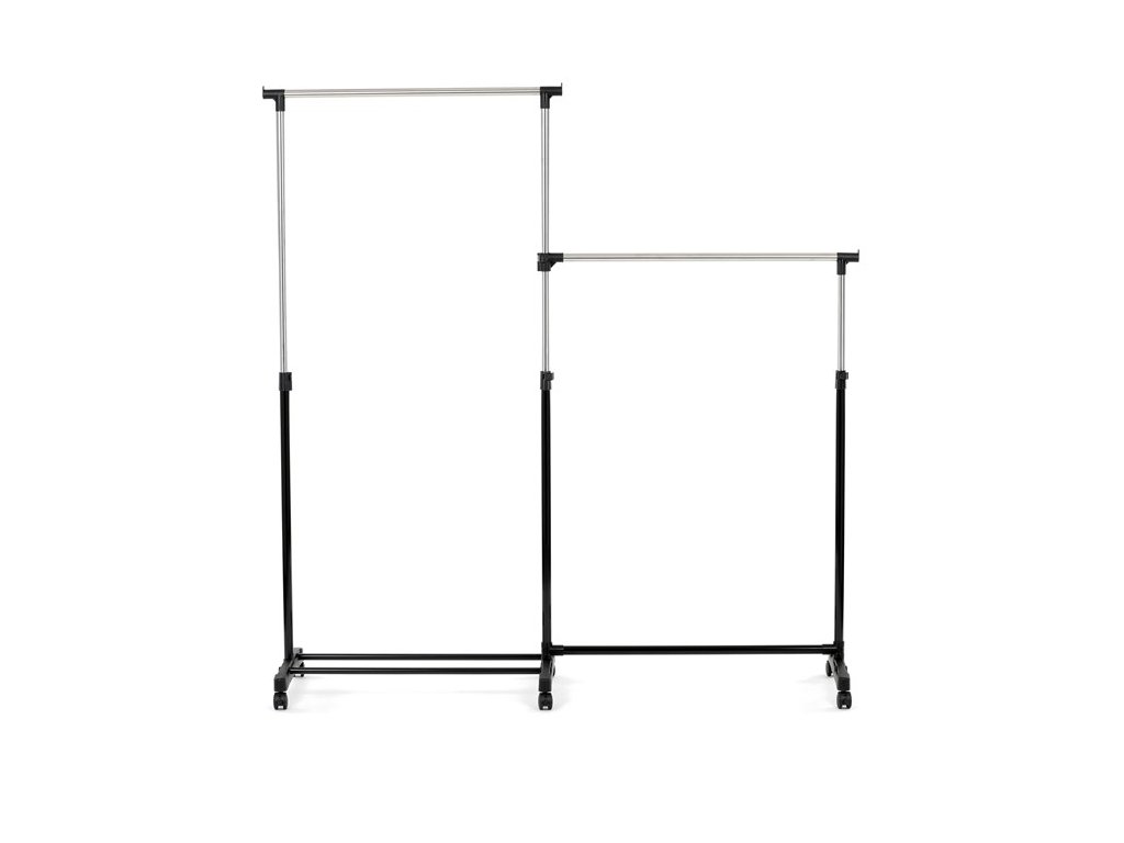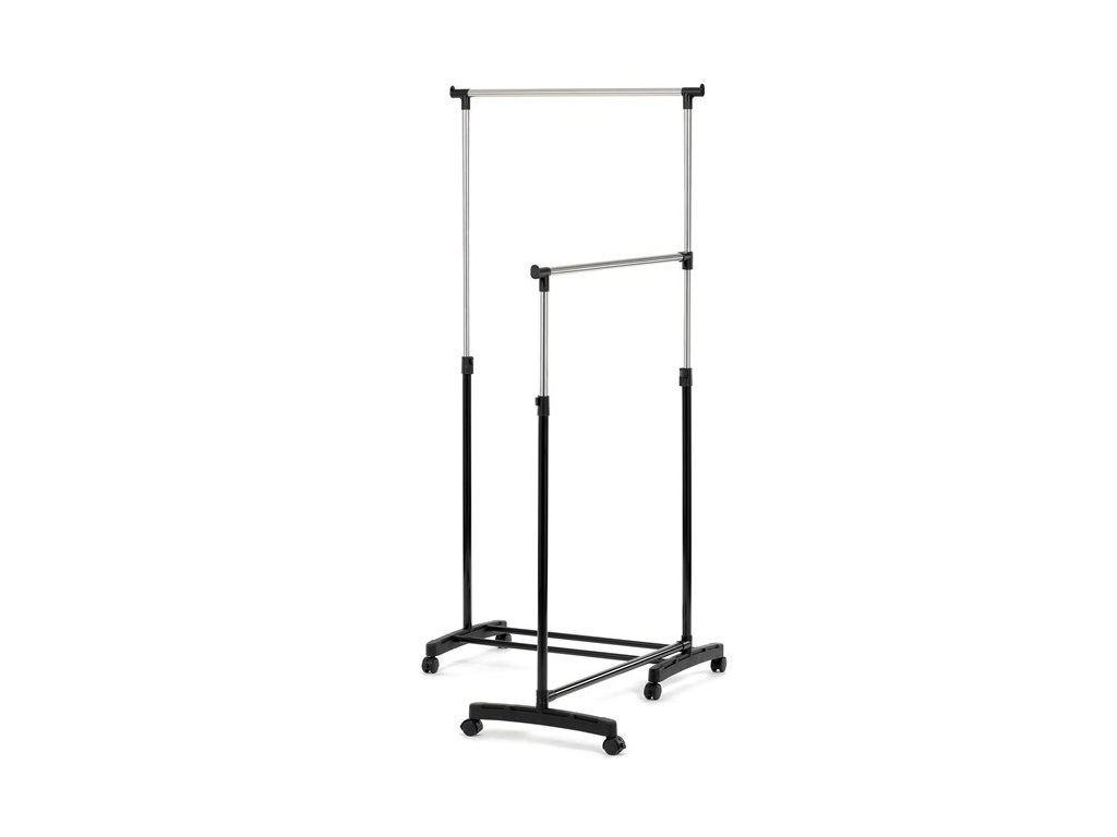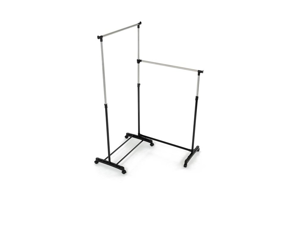 Dvojitý stojan na šaty značky Autronic je ideálním řešením pro maximální využití úložného prostoru. Stabilní kovová konstrukce v kombinaci s kolečky umožňuje snadnou manipulaci a vysokou nosnost. Dvě prostorné tyče poskytují dostatek místa pro zavěšení oblečení, ideální pro šatny, ložnice či předsíně. Minimalistický design v černém provedení se snadno přizpůsobí jakémukoliv interiéru. Díky své praktičnosti a flexibilitě je tento stojan perfektní volbou pro každodenní použití i sezónní organizaci šatníku.