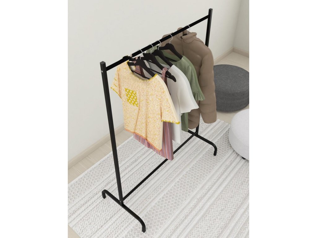 šířka: 43 cm | výška: 108 cm | hloubka: 37 cm Praktický němý sluha v minimalistickém designu. Konstrukce je z kovových trubek pr. 19 mm. Povrchová úprava je v černém matném...