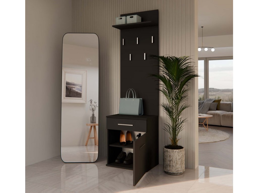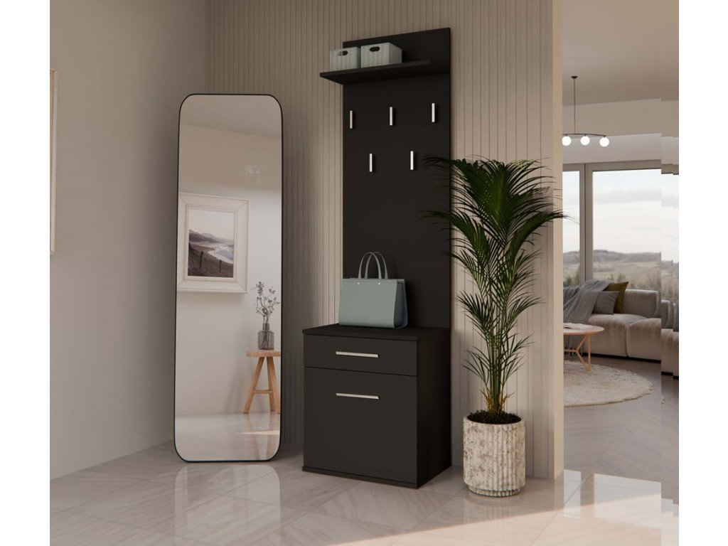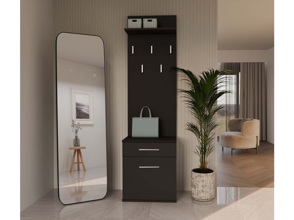 šířka: 50 cm | výška: 180 cm | hloubka: 35 cm Věšák s botníkem DUO spojuje styl a praktičnost. Díky šikovnému rozvržení háčků, police a úložných prostor je ideálním řešením pro...