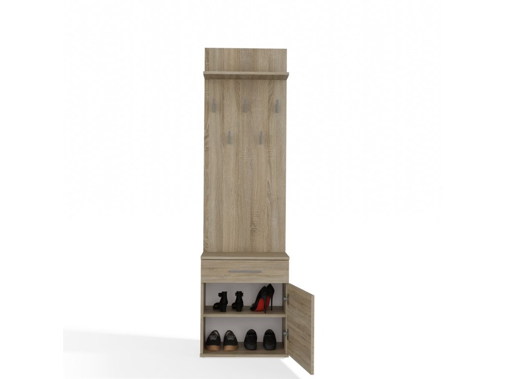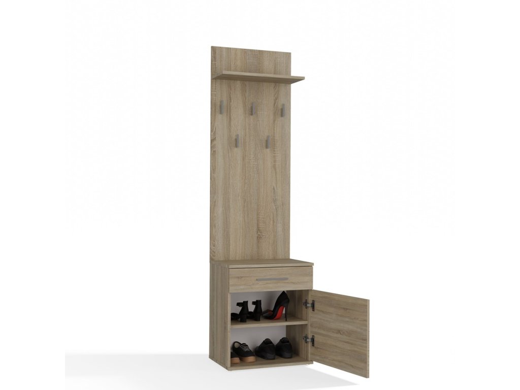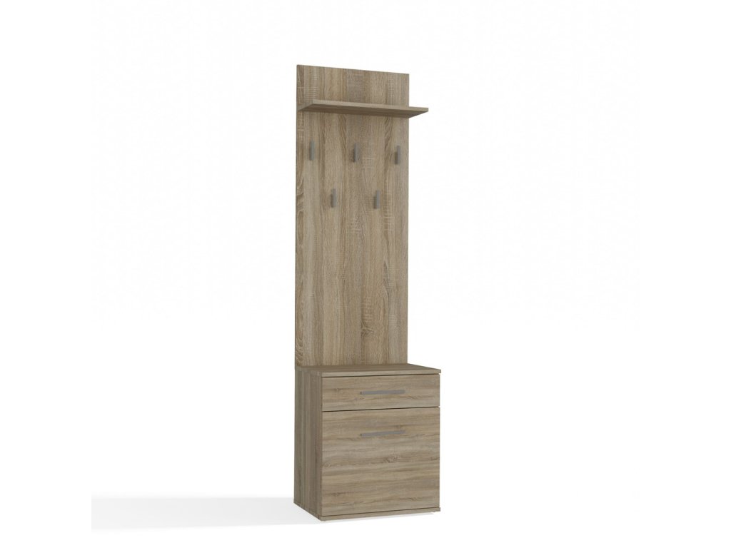 šířka: 60 cm | výška: 30 cm | hloubka: 22 cm Závěsný věšák s policí a háčky je vyroben z desky LTD v barevném provedení dub sonoma. Dodáváme v demontovaném stavu.