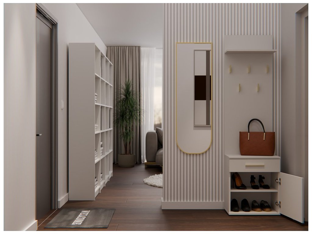 šířka: 85 cm | výška: 82 cm | hloubka: 15 cm Nástěnný věšák se zrcadlem a praktickou policí nabízí elegantní a účelové řešení pro každý vstupní prostor. Hlavní výhody:6...