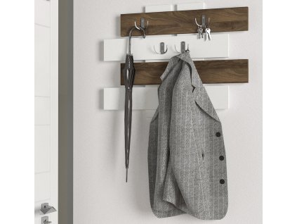 šířka: 80 cm | výška: 60 cm Nástěnný věšák je vyroben z kvalitního lamina o tl.18 mm hraněné PVC páskou, odolného proti poškrábání v kombinaci barev matná bílá/ořech vlašský....