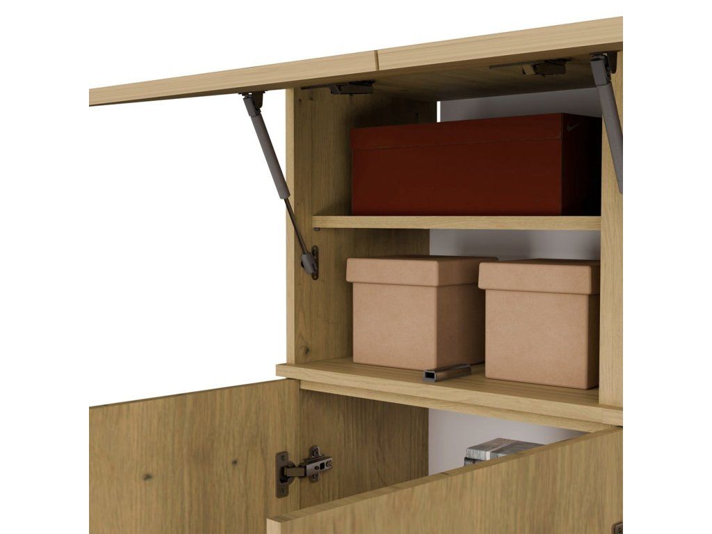 Horní skříňka nabídne místo na čepice, šály nebo doplňky, prostřední část se třemi háčky poslouží na kabáty a tašky a spodní skříňka pod čalouněným sedákem pomůže s ukládáním obuvi nebo běžných denních věcí. Díky bezúchytovému systému TIP-ON působí panel čistě a moderně, takže snadno zapadne do světlé i tmavší předsíně.