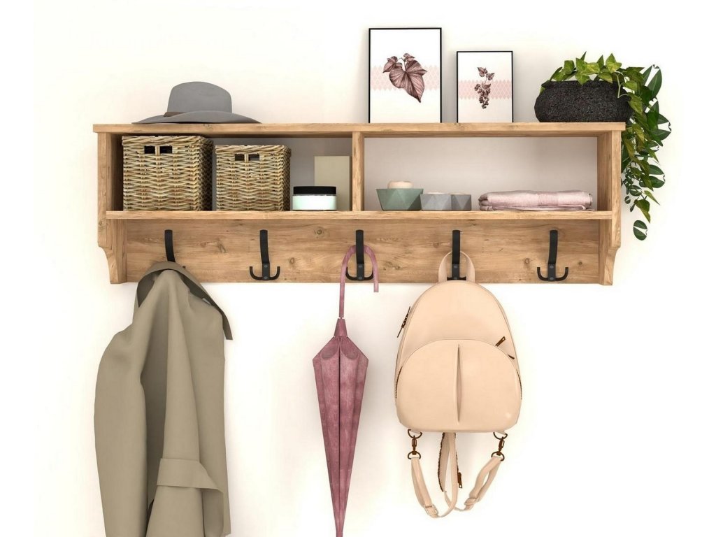 šířka: 70 cm | výška: 40 cm | hloubka: 20 cm Nástěnný věšák 2F nabízí sedm háčků a praktickou horní polici. Je ideální do menších předsíní, kde je potřeba maximálně využít...