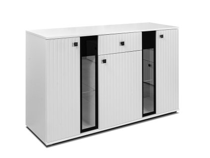 šířka: 92 cm | výška: 147 cm | hloubka: 40 cm Vitrína dvoudveřová se dvěma zásuvkami v moderním provedení. Nábytek je vyroben z desky LTD hraněné páskou ABS v barvě bílá mat....