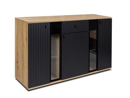 šířka: 92 cm | výška: 200 cm | hloubka: 40 cm Vitrína třídveřová je vyrobena z kvalitní desky LTD hraněné ABS páskou v barvě dub artisan. Dekorační riflovaná lišta nahoře je z...