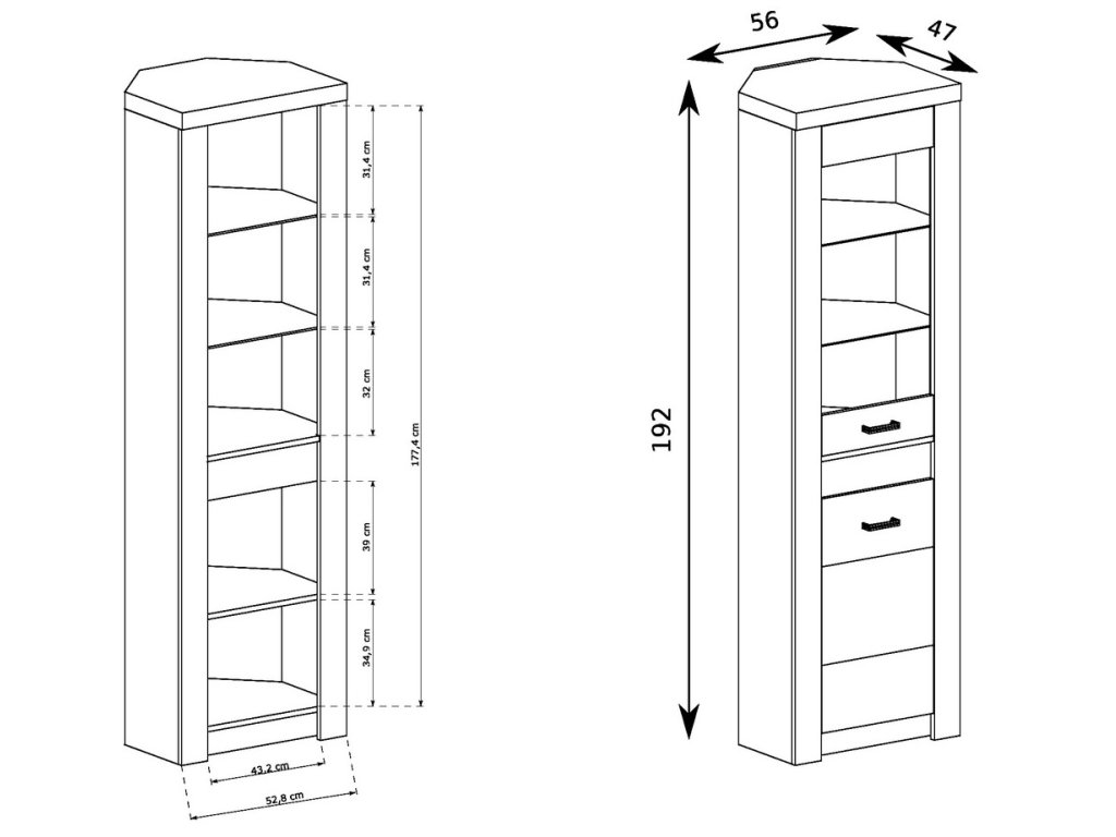 šířka: 56 cm | výška: 192 cm | hloubka: 58 cm Skříňka má 1 dveře a 1 zásuvku. Uvnitř skříně je prostor se šatní tyčí. Systém je exkluzivní kolekce navržena v moderním duchu....